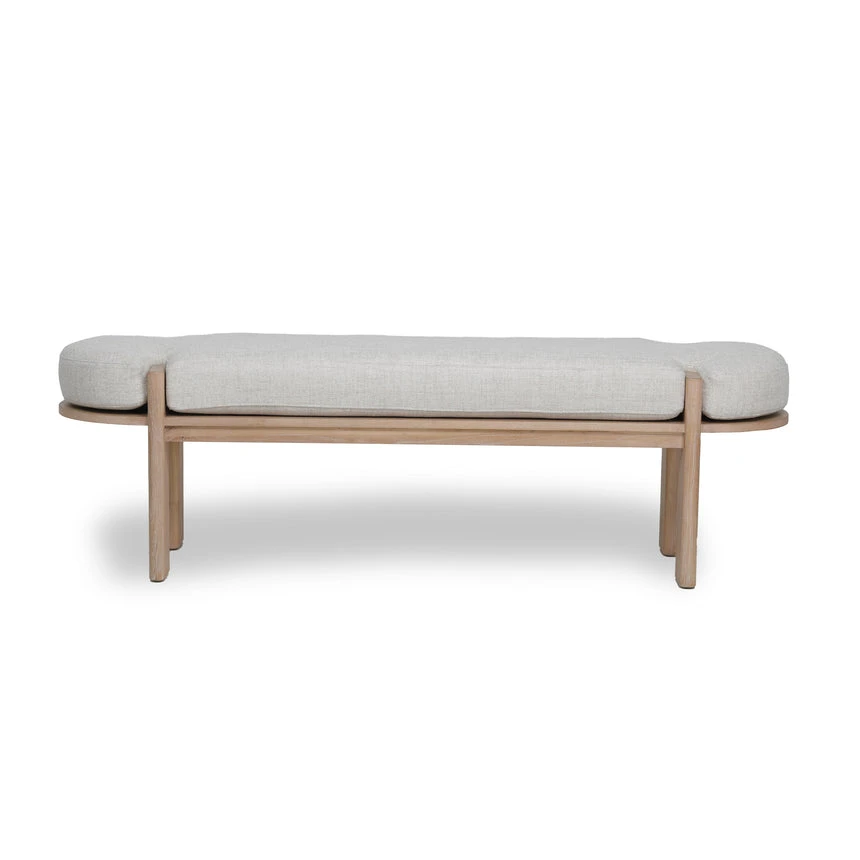 Plywood with veneer seat Solid elm wood legs and frame Natural linen cushion Light Natural elm finish Rectangular legs design Modern and elegant Weight Capacity: 300 kg Fully assembled