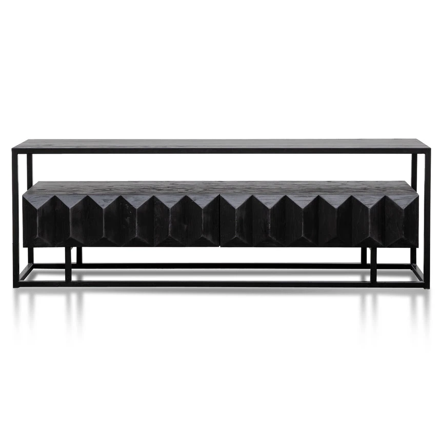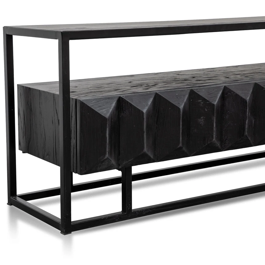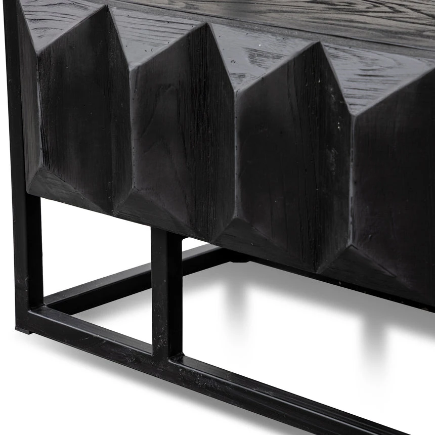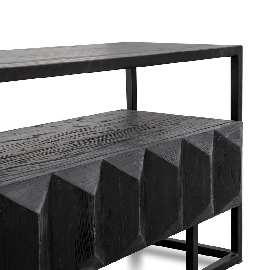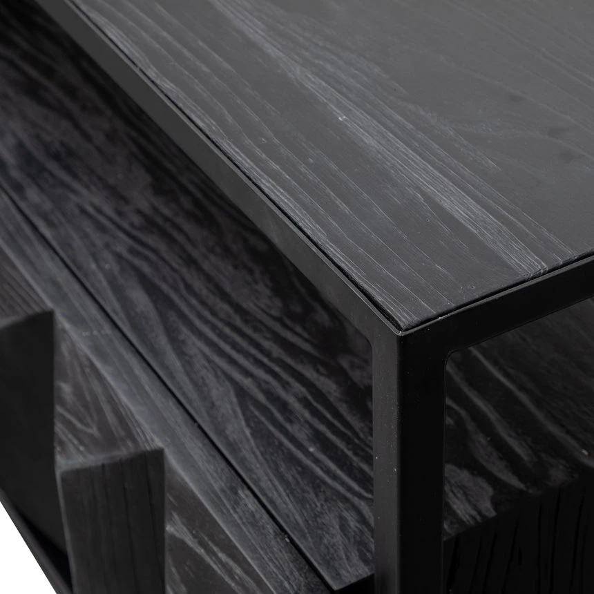 Constructed from recycled pine wood in a black finish Black iron legs and frame 2 x pull out drawers Minor assembly required