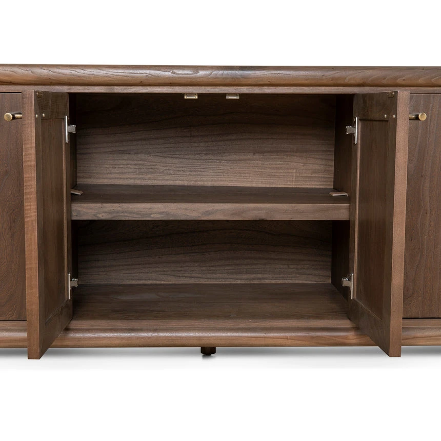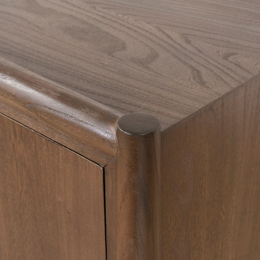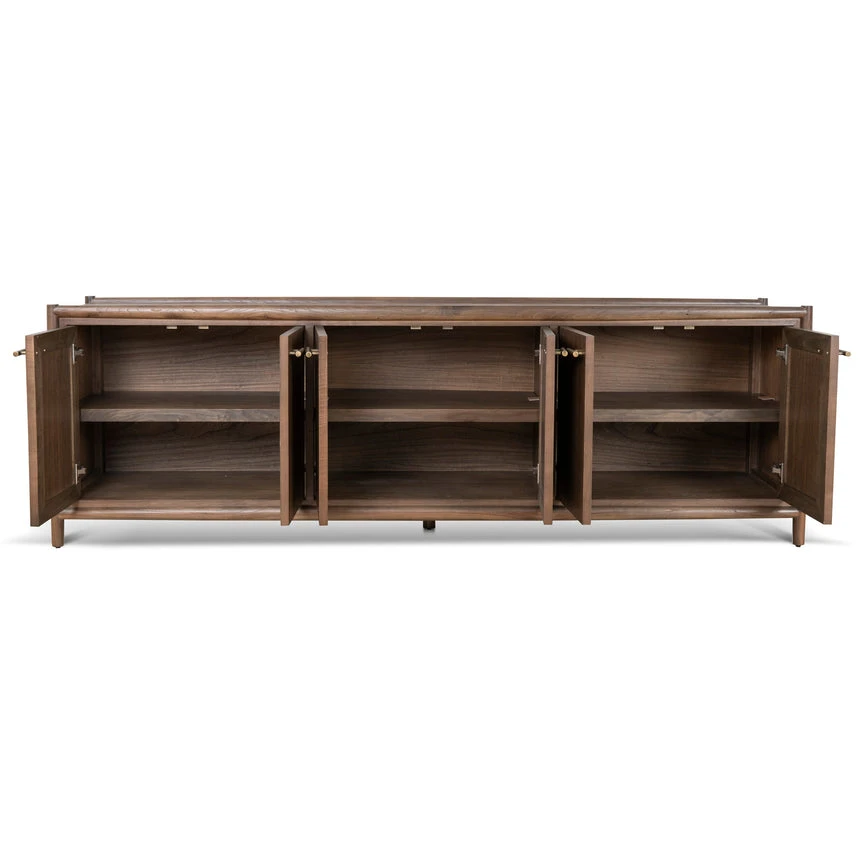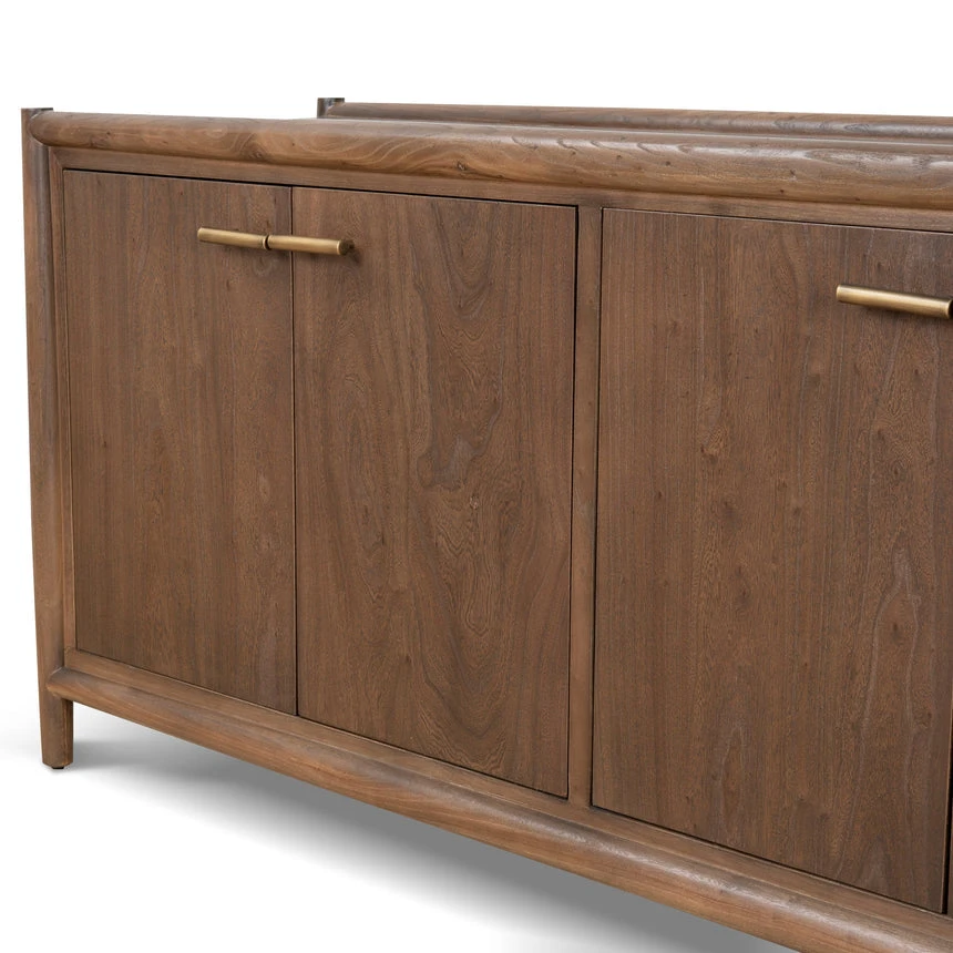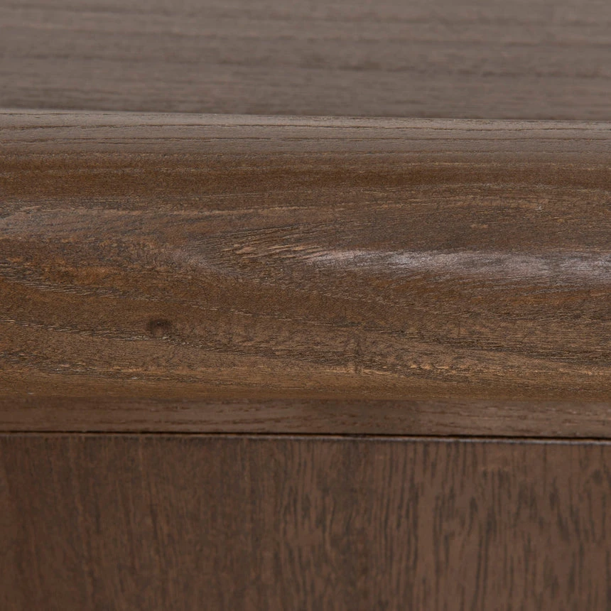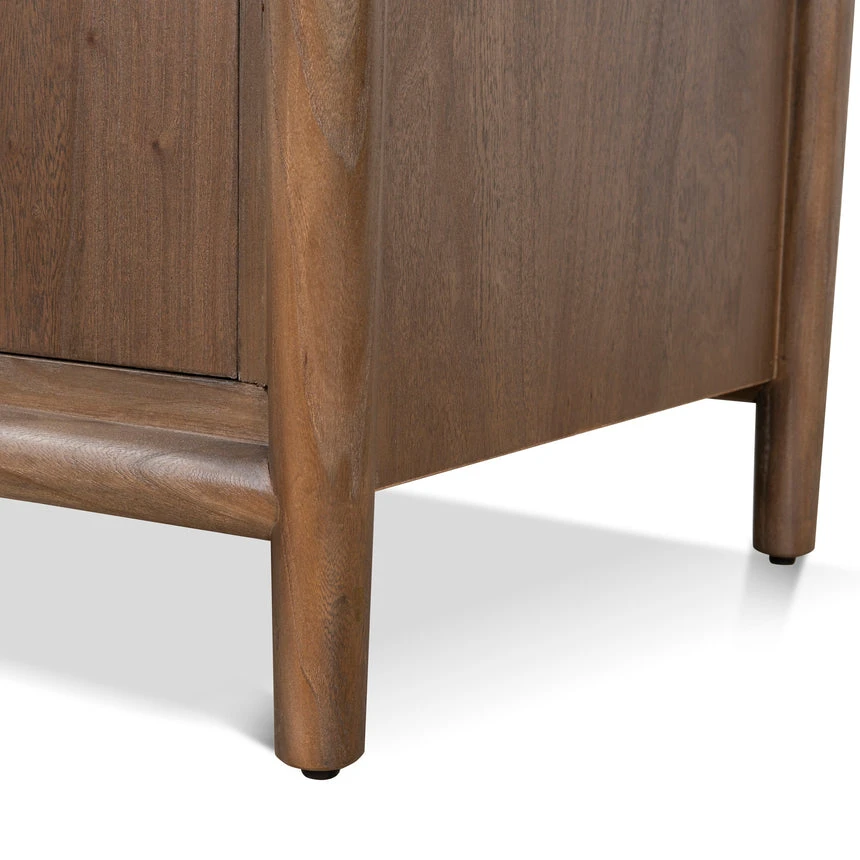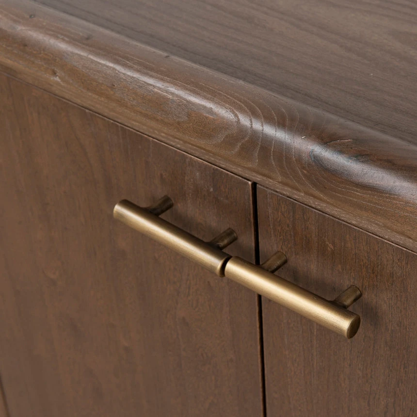 Solid elm wood legs Plywood natural veneer top Refined walnut finish Clean and streamlined design Sophisticated wood grain details Polished brass handles Sturdy tapered legs Ample interior storage Weight Capacity: 150 kg Product comes fully assembled