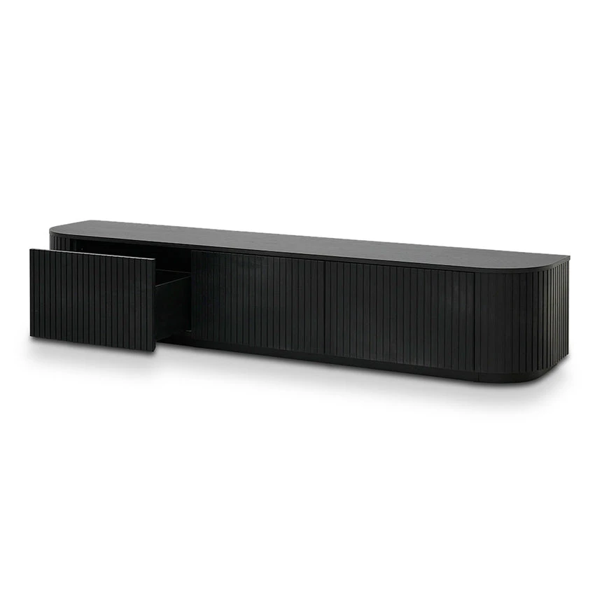 Full Black Oak engineered wood body and legs 3x drawers with 3x cable management holes Soft-close drawers with pull-open mechanism Oval top with smooth curved edges Weight Capacity: 80 kg Product comes fully assembled