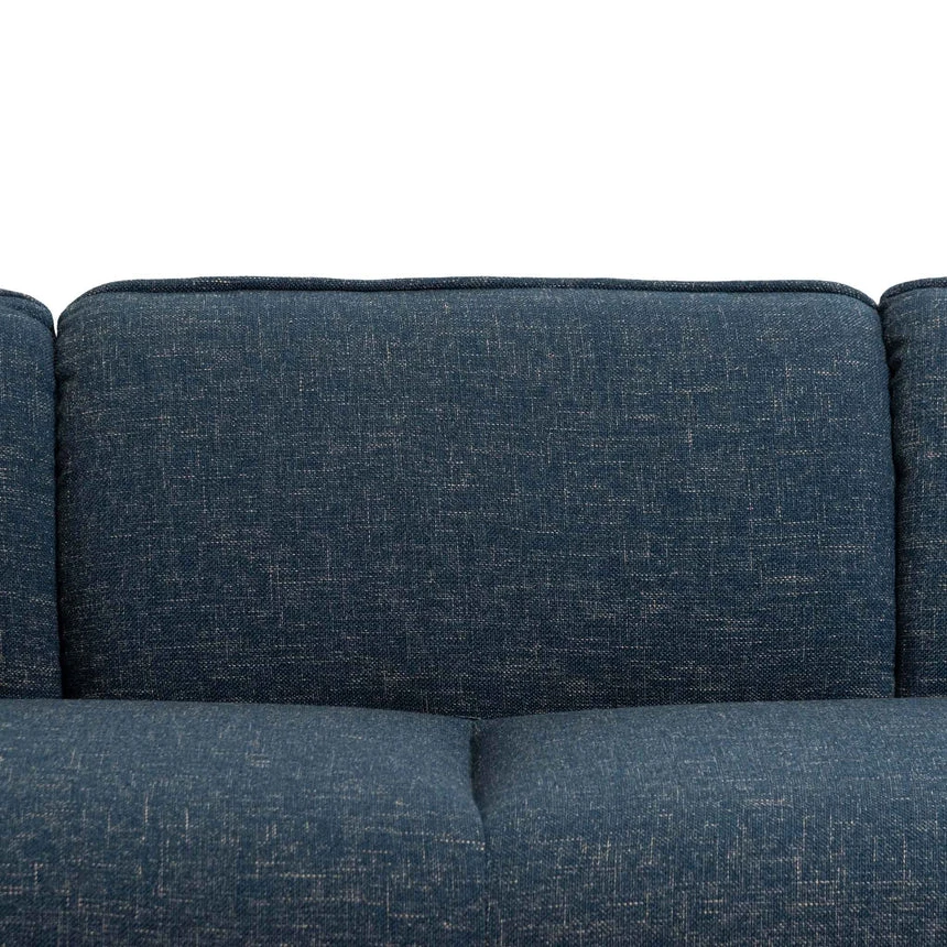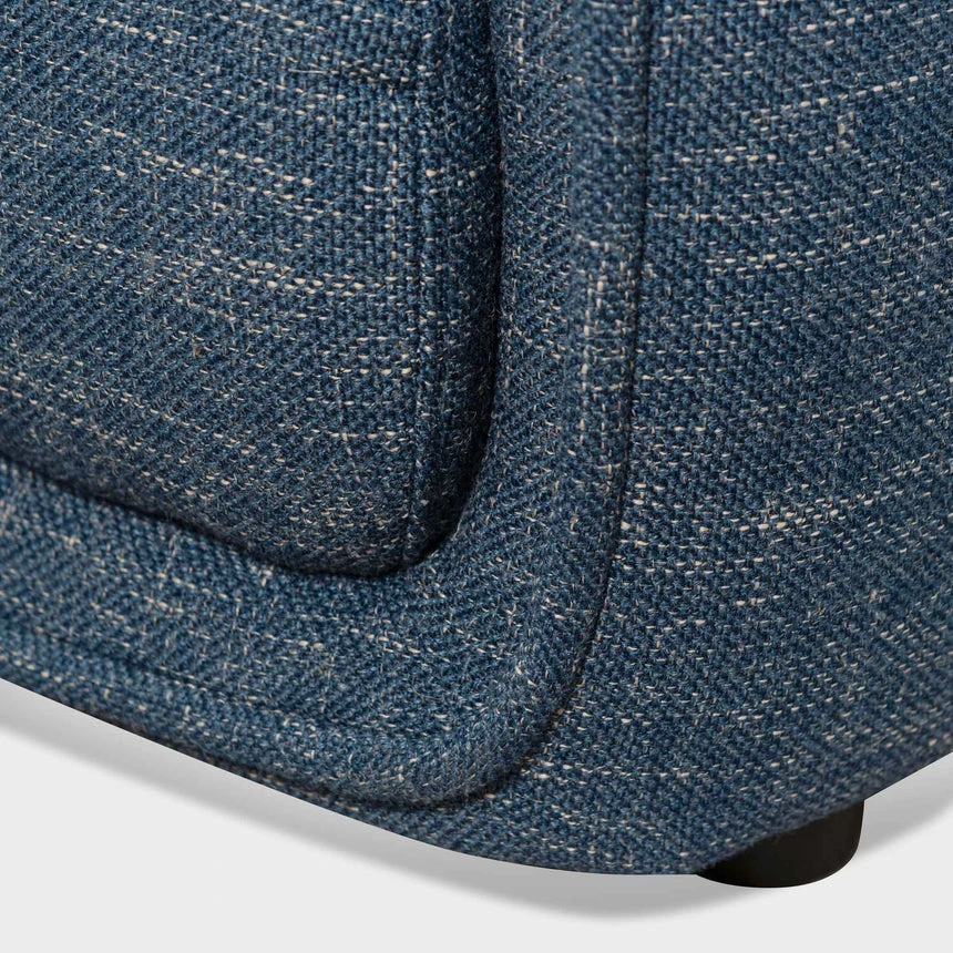 Durable dark blue polyester fabric upholstery Supportive and comfortable seat with a foam and fibre insert Includes web suspension for lasting structural integrity Curved silhouette and pipe stitching along cushion edges Minor assembly required to attach legs to base