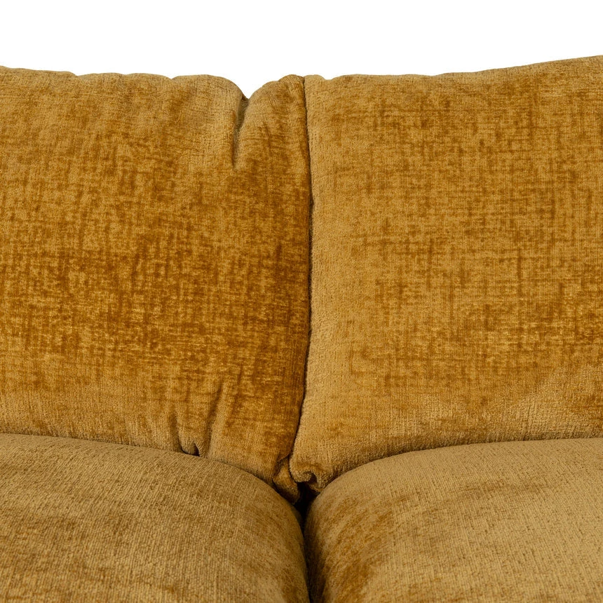 Ochre fabric upholstery Pine wood frame Plastic legs construction Spring suspension Foam cushion filling Modern design with soft rounded edges Plush overstuffed cushions Contemporary design with classic style Weight Capacity: 250 kg Minor assembly required