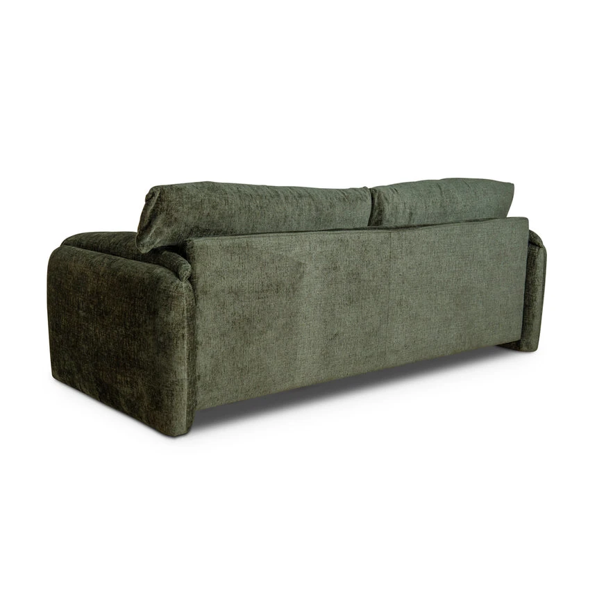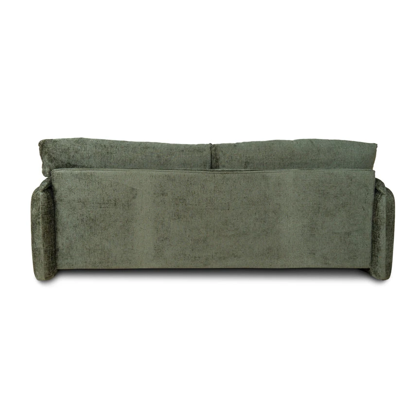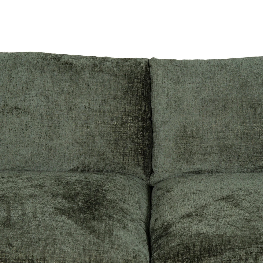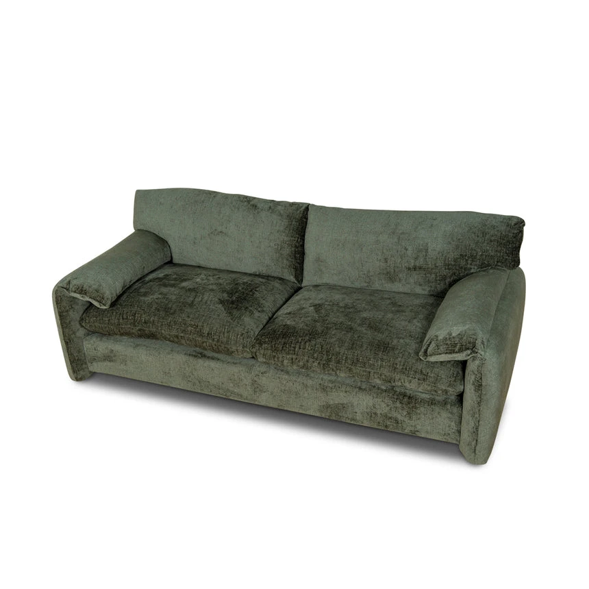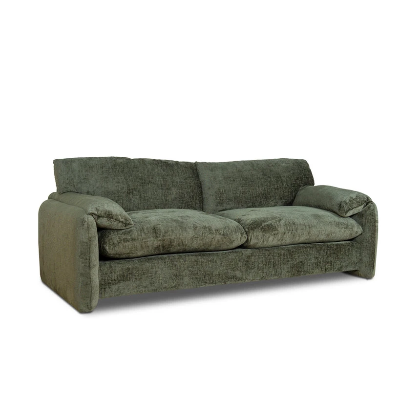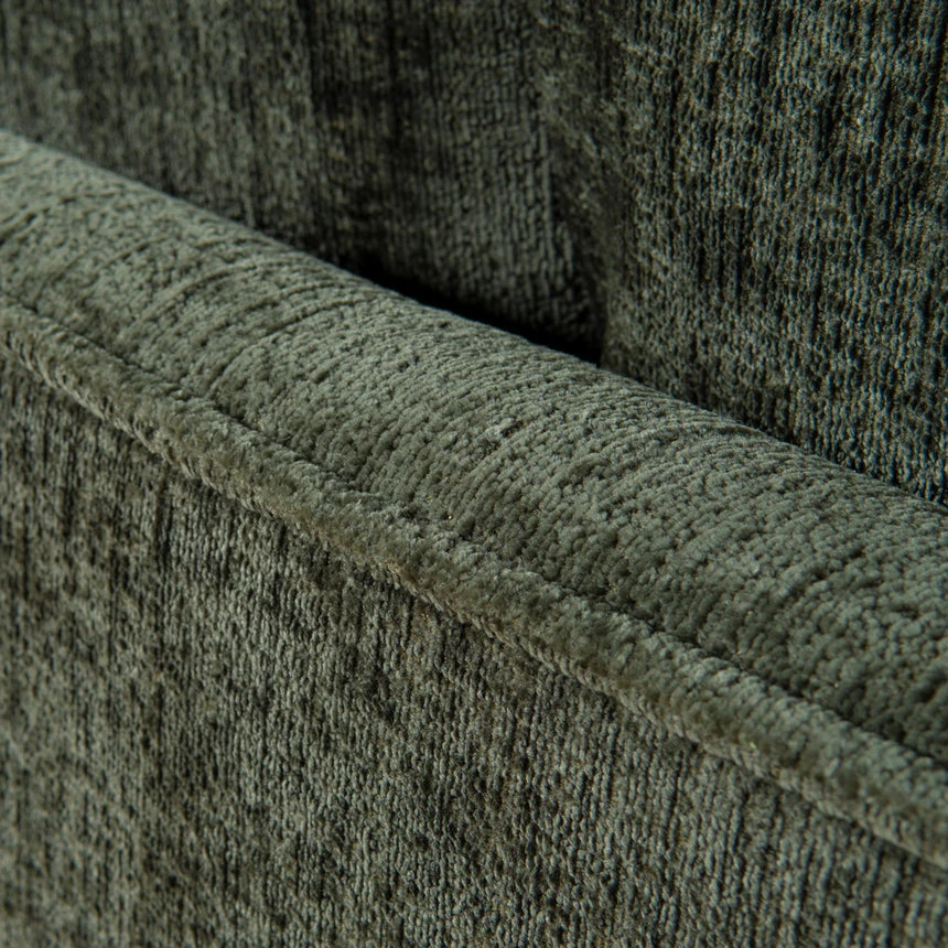 Turtle green polyester fabric upholstery Pine wood frame construction Soft velvety finish Spring-based suspension Foam cushion filling Modern and cozy design Plush overstuffed cushions Low-profile structure with broad soft arms Sturdy legs Weight Capacity: 250 kg Minor assembly required
