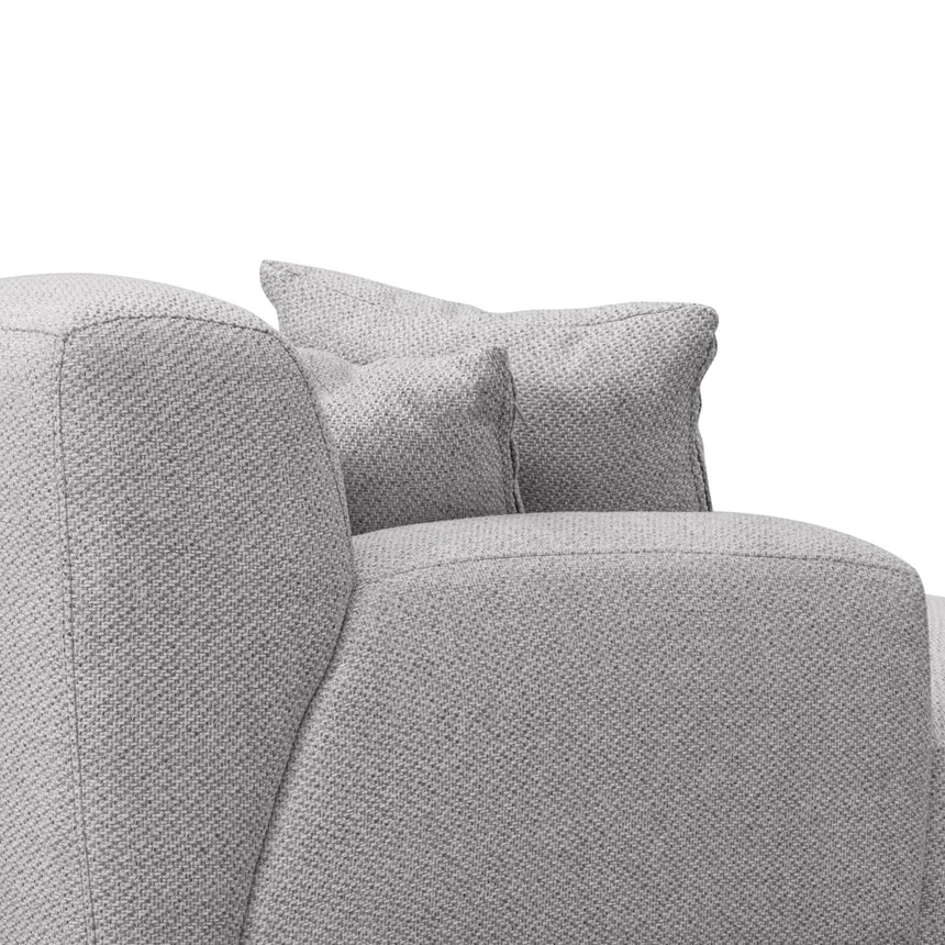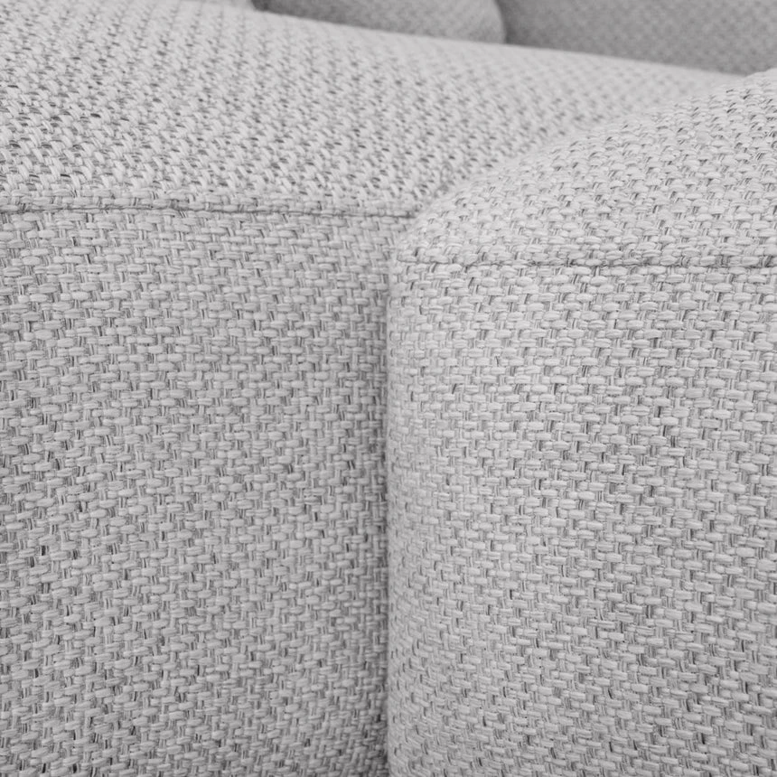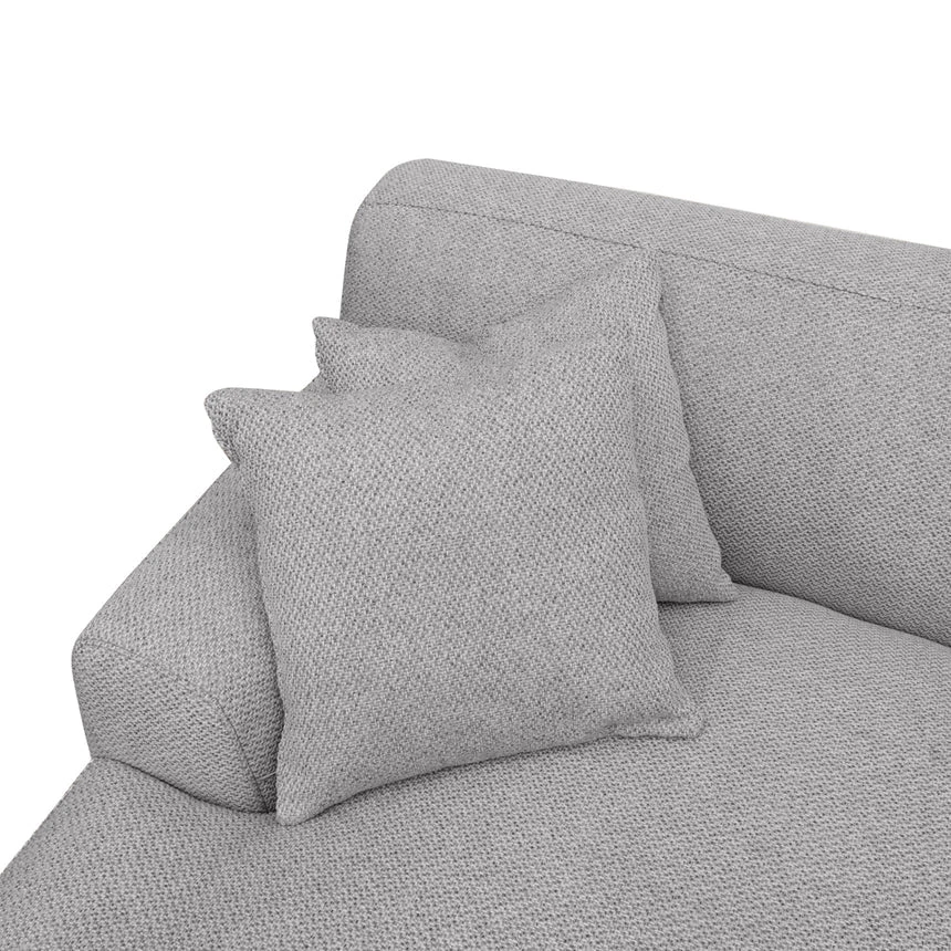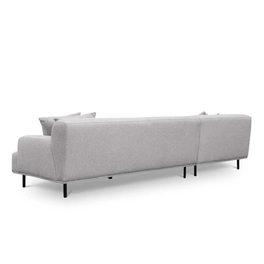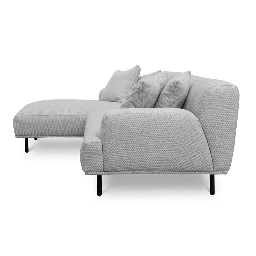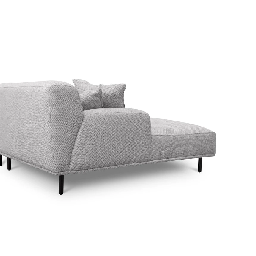 Sterling sand polyester upholstery Pinewood frame construction Left-facing chaise Plush foam and feather filling Soft medium seat firmness Spring suspension Metal legs equipped with floor protectors Weight capacity: 400 kg Minor assembly required