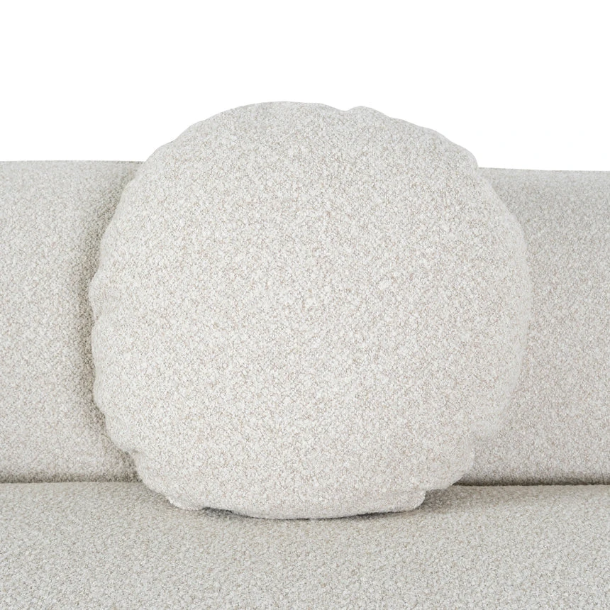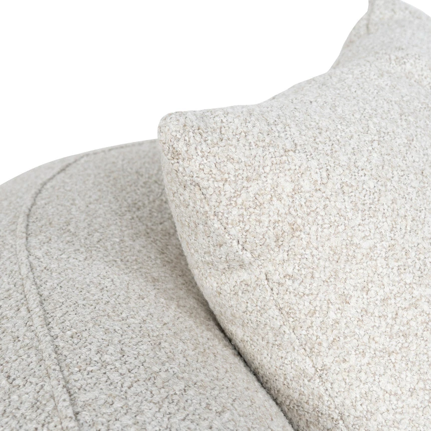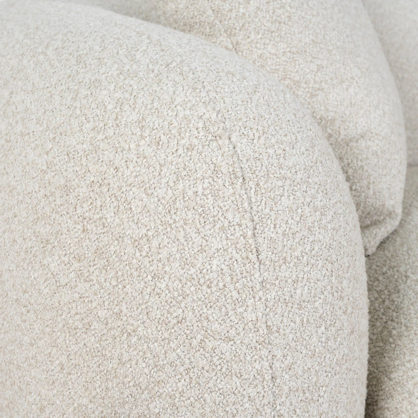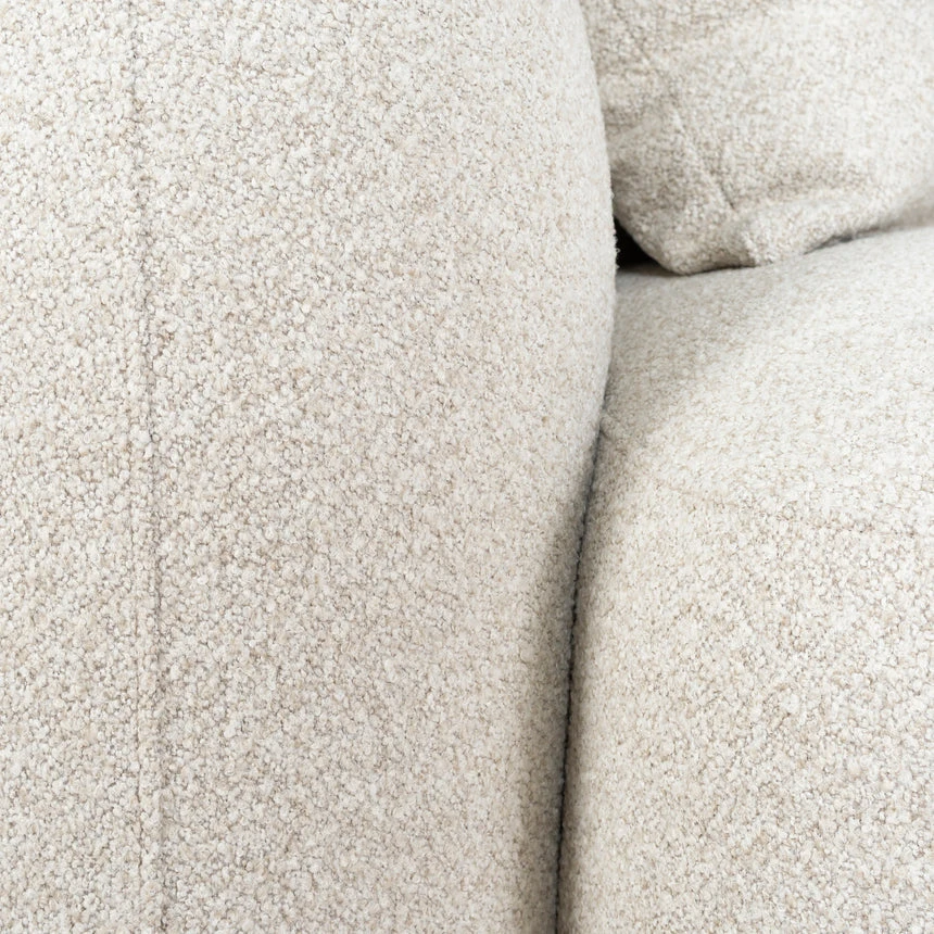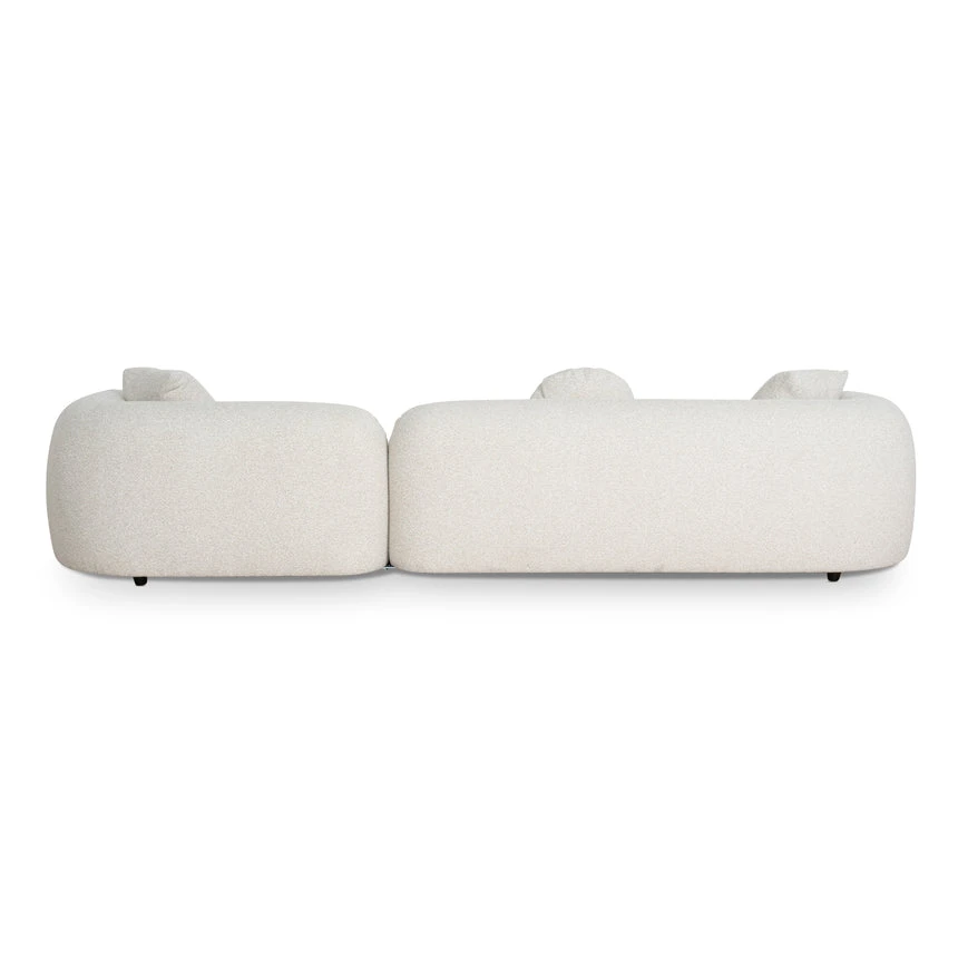 81% polypropylene and 19% polyester upholstery Pinewood frame construction Rubber legs Spring suspension system Foam filling with soft-medium seat firmness Oatmeal beige fabric Curved sculptural design Right-facing chaise Distributed weight capacity of up to 480 kg Minor Assembly Required