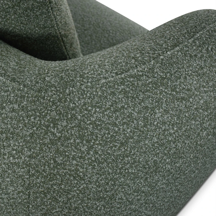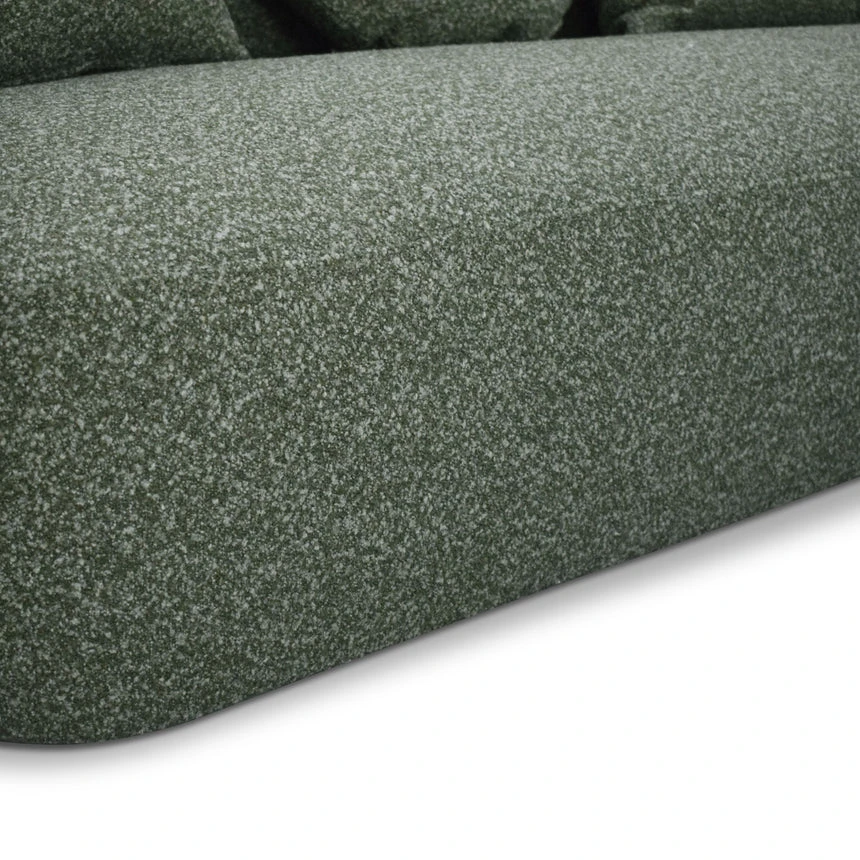 81% polypropylene and 19% polyester upholstery Pinewood frame construction Rubber legs Spring suspension system Foam filling with soft-medium seat firmness Amazon green fabric Curved sculptural design Perfect for smaller spaces Distributed weight capacity of up to 360 kg Minor assembly required