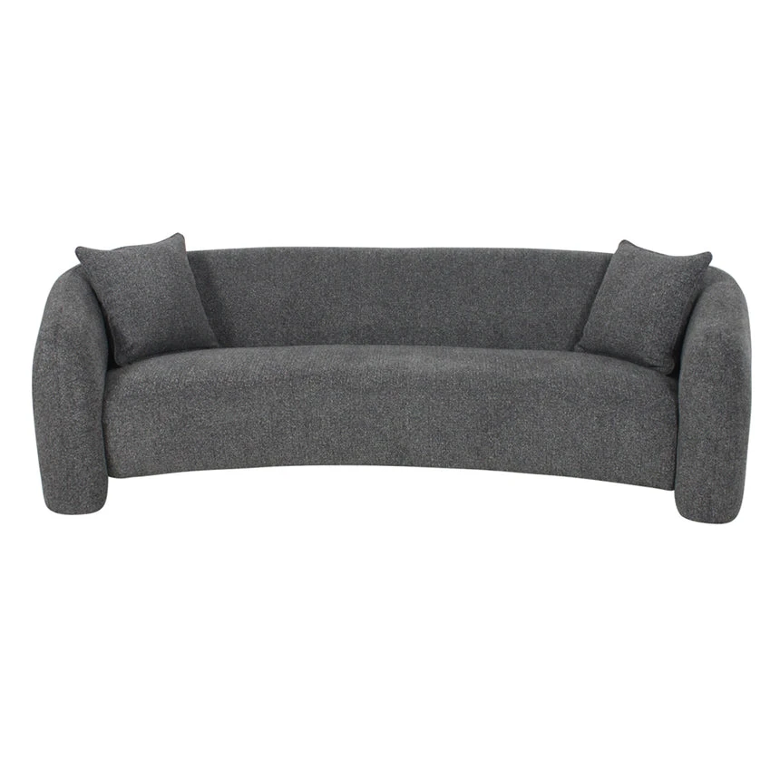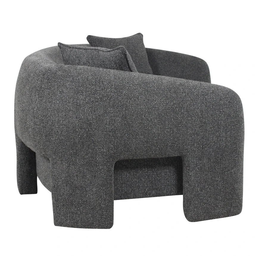 Coral Charcoal polyester upholstery Pinewood and plywood frame Medium seat firmness Web and spring suspension Rubber legs with floor protectors Sleek sophisticated design Weight capacity: 300 kg Product comes fully assembled
