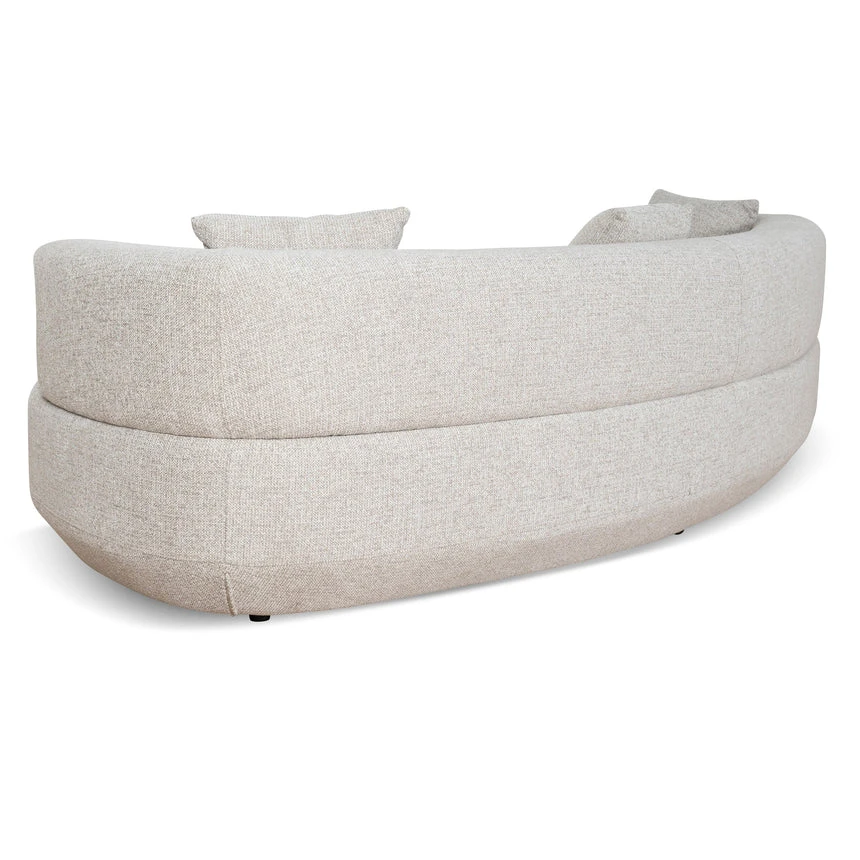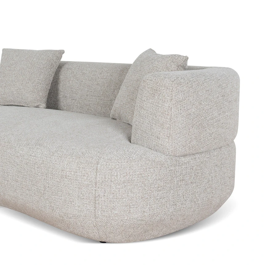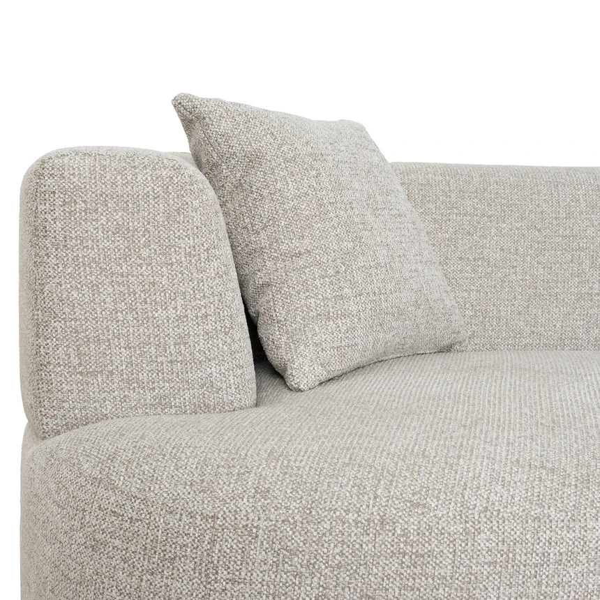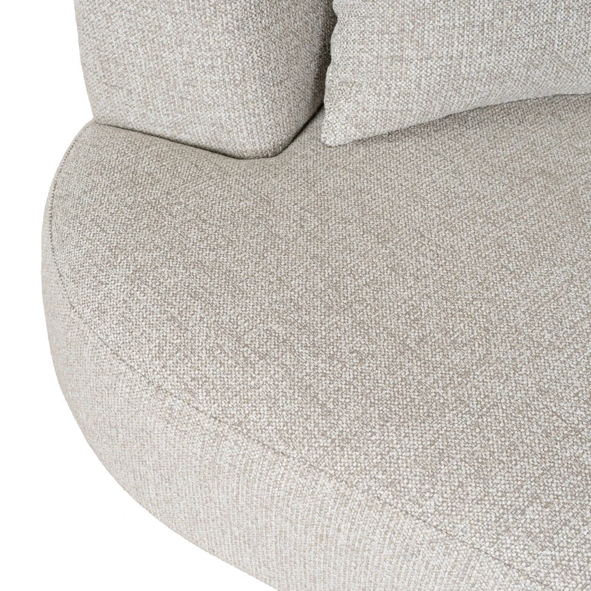 Coral natural linen polyester upholstery Pinewood frame construction Web and spring suspension Pinewood legs Foam filling Soft seat firmness Rounded silhouette for an organic touch Hidden base for a floating effect Weight Capacity: 400 kg Product comes fully assembled