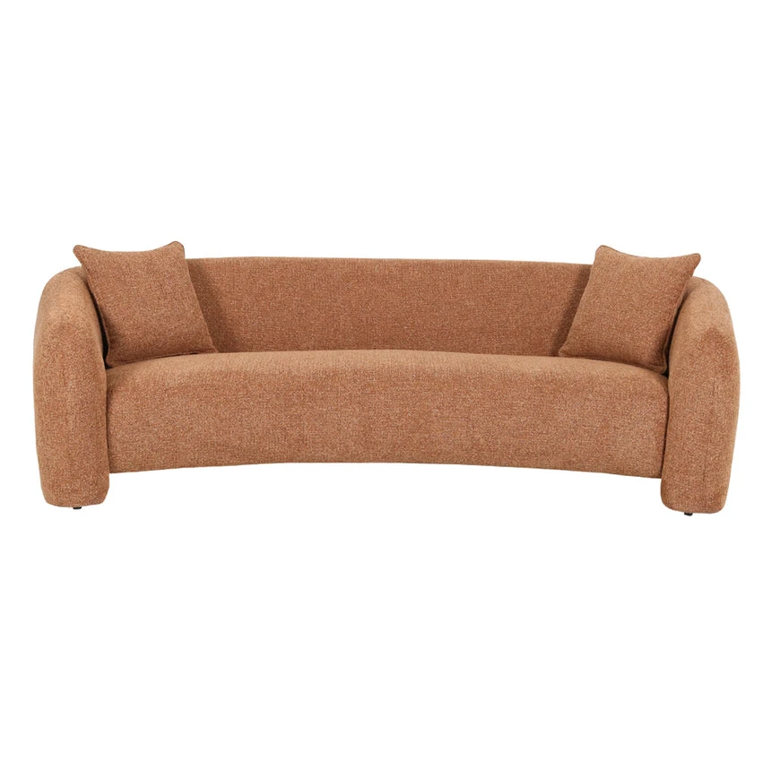Coral Orange polyester upholstery Pinewood and plywood frame Medium seat firmness Web and spring suspension Rubber legs with floor protectors Sleek sophisticated design Weight capacity: 300 kg Product comes fully assembled