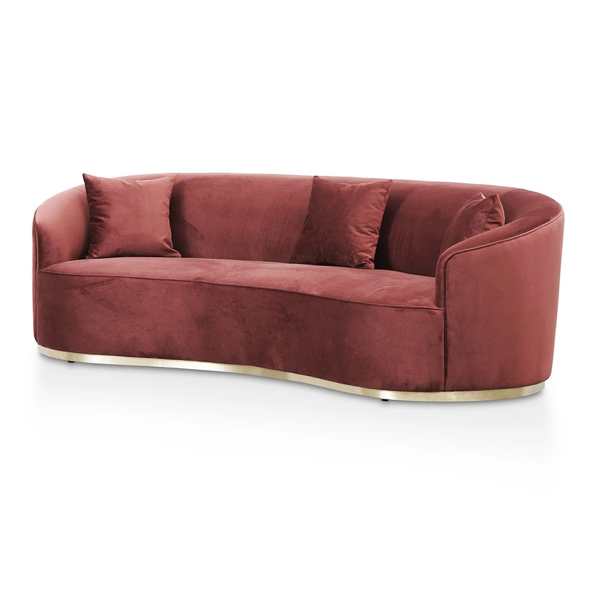 100% polyester upholstery Pinewood timber frame Pinewood timber base with gold-finished stainless steel plate Foam filling with web-spring suspension Soft-medium seat firmness Weight capacity: 400 kg Product comes fully assembled