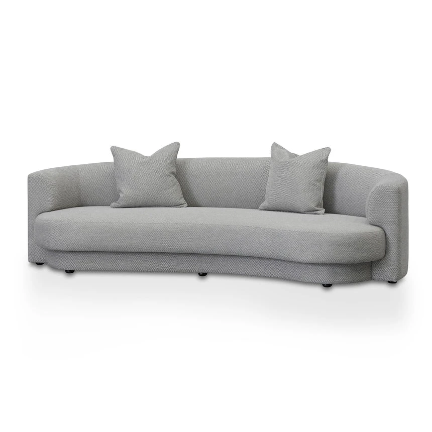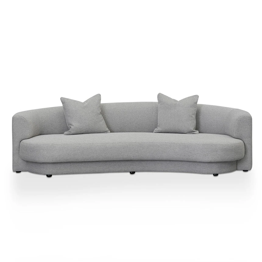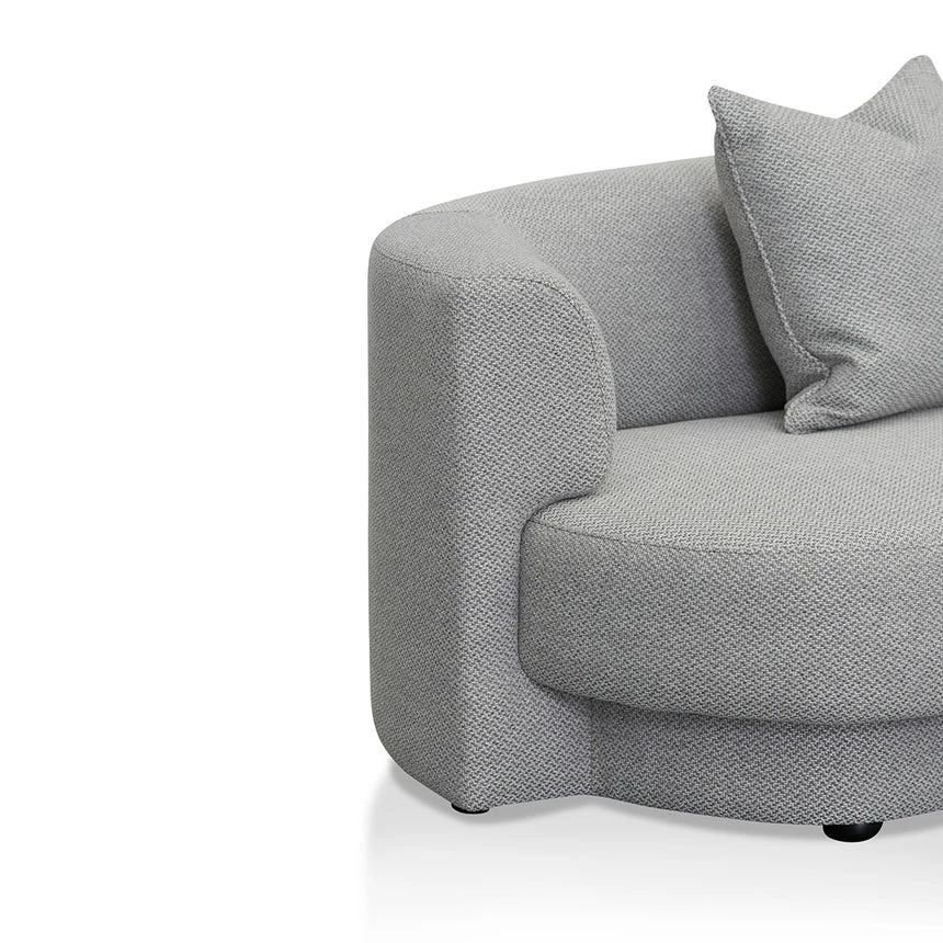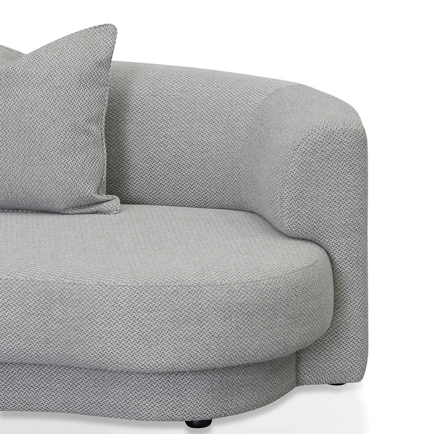 100% Polyester upholstery in grey finish Sturdy Pine wood frame Pine wood legs equipped with floor protectors Curved back and tight seat ideal for 3 people Foam filling with web-spring suspension Soft-medium seat firmness Suitable for commercial use 500kg weight capacity Product is fully assembled