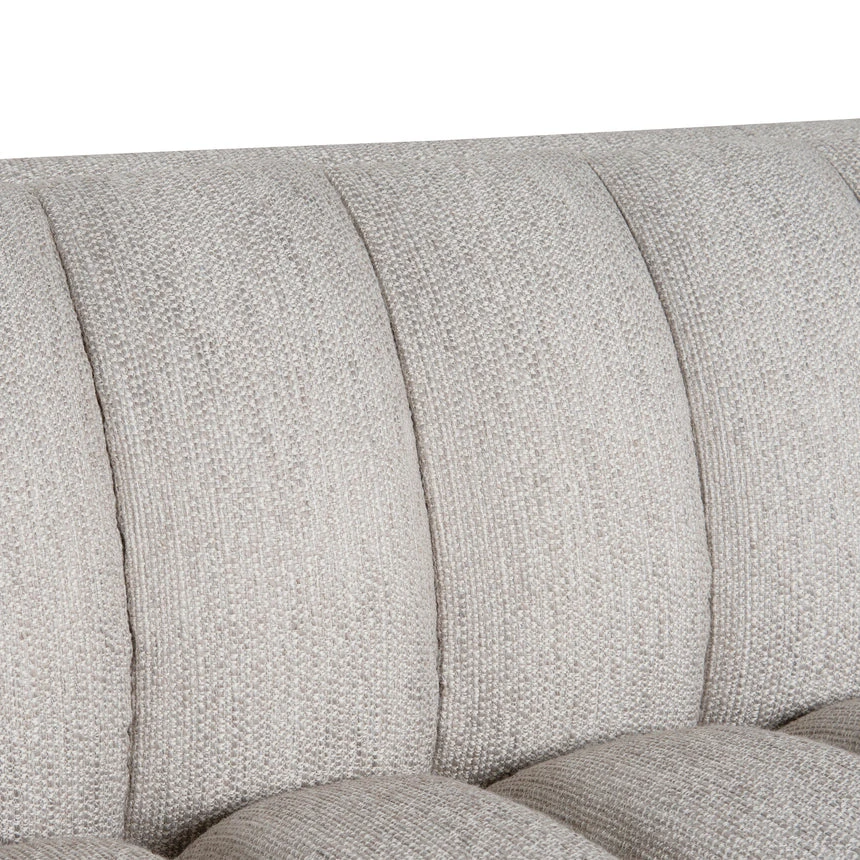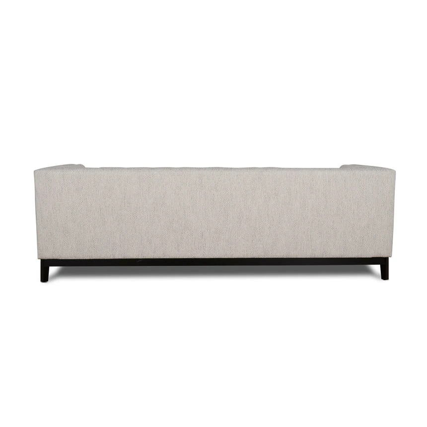 54% polyester 46% acrylic upholstery Light grey fabric finish Pinewood frame construction Foam filling cushion Web and spring suspension Deep plush seating Modern elegant tufted design Black ash wood legs Soft medium seat firmness Weight Capacity: 400 kg Minor assembly required