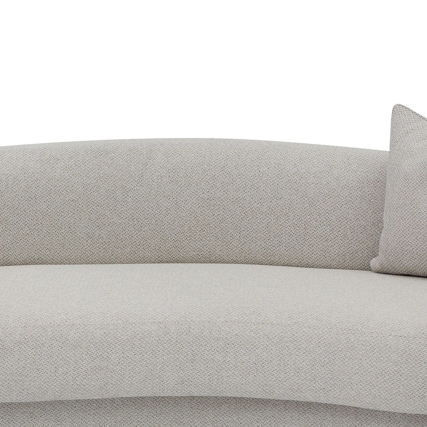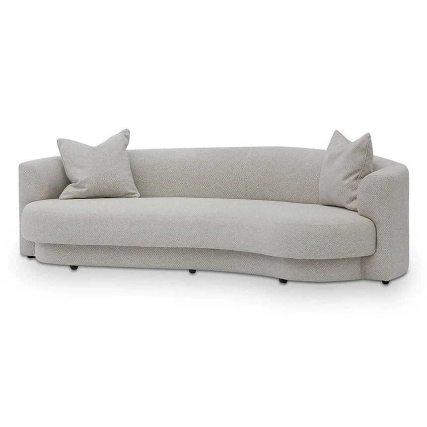 54% polyester and 46% acrylic fabric upholstery Upholstered in a durable sterling sand Pine Wood constructed frame Foam filling with web suspension Soft-medium seat firmness Pine wood legs with non-slip floor protectors Curved back and tight seat Suitable for commercial use Weight capacity of 350 kg Product is fully assembled