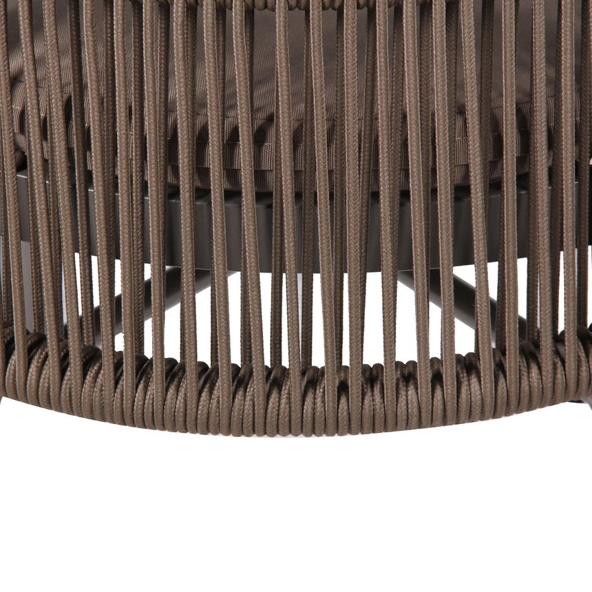 Brown polyester fabric upholstery Aluminum frame and legs 6mm rope detailing with 4cm thick cushion Rope with spandex polyester core Outer layer of rope; UV-resistant plastic and high-strength yarn Removable cushion with foam filling Gently rounded backrest Soft-to-medium seat firmness Cross-brace support Ergonomic design Weight Capacity: 200 kg Product comes fully assembled