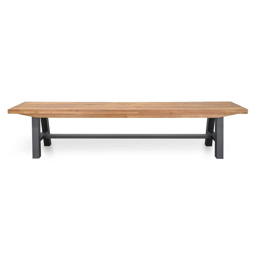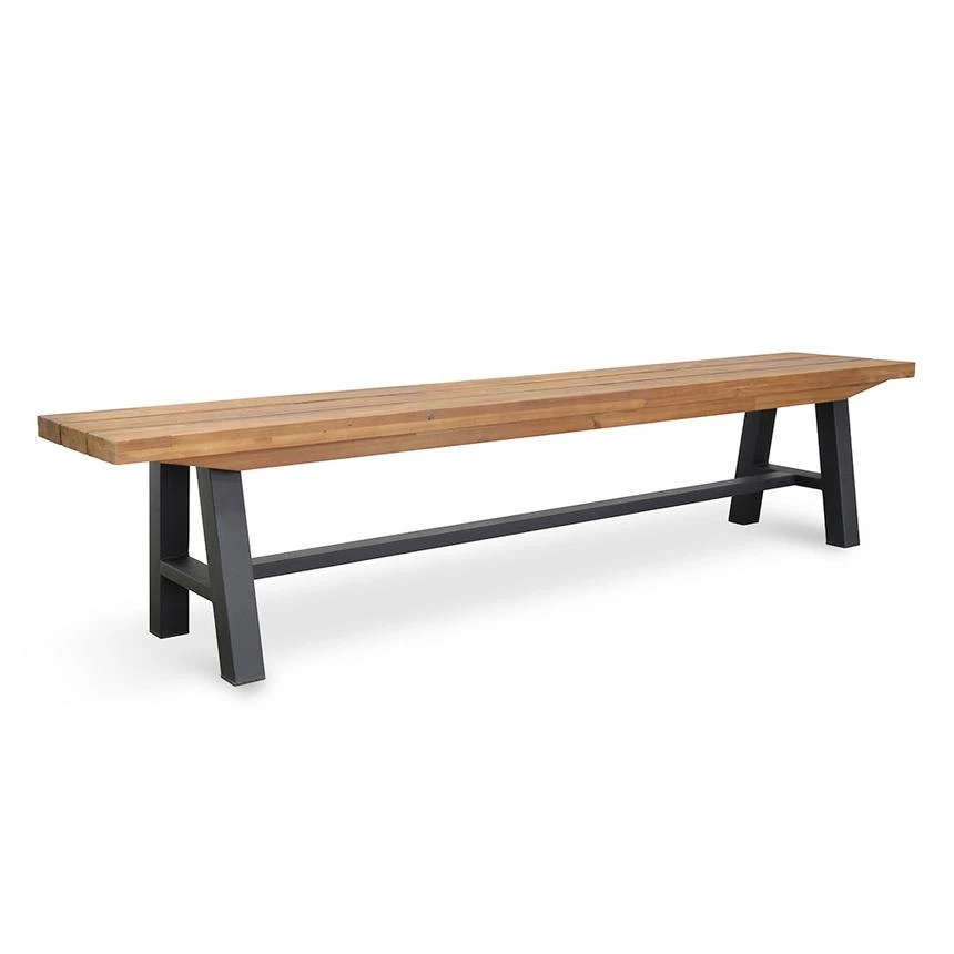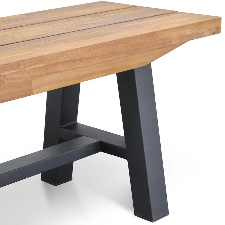 Solid acacia wood for a stylish, enduring and stable structure Black finish offers a protective coating for a design made to last Warm timber tones showcase natural appeal and rustic edge for your living space Angular legs create relaxed, timeless style and Scandinavian good looks Strong steel base for industrial texture and incredible resistance over time Ideal seating not only for your dining area, but also the entryway or patio Suitable for Indoor or Outdoor use It’s recommended to treat the timber with a PU lacquer Note: Although the this item is weather proof, as with all Outdoor products, to preserve the longevity of the product, it’s recommended this product is kept under cover from harsh Australian elements.