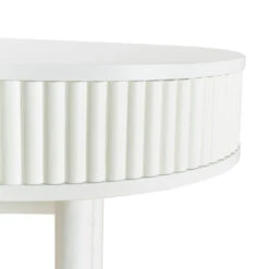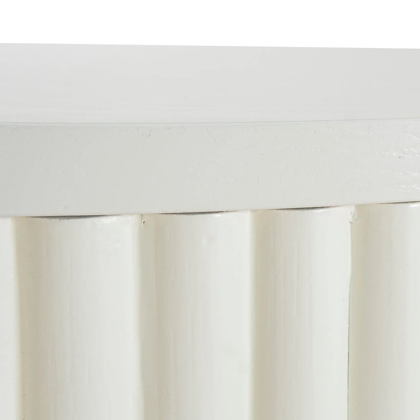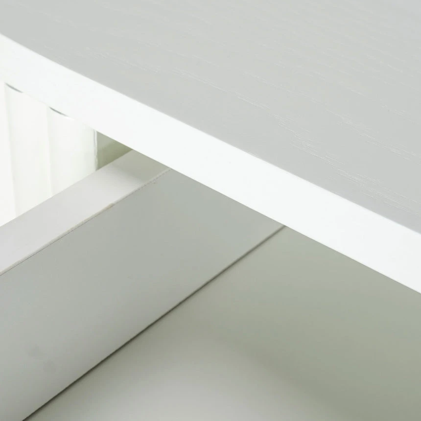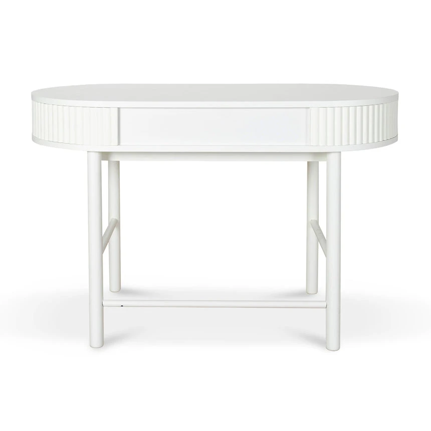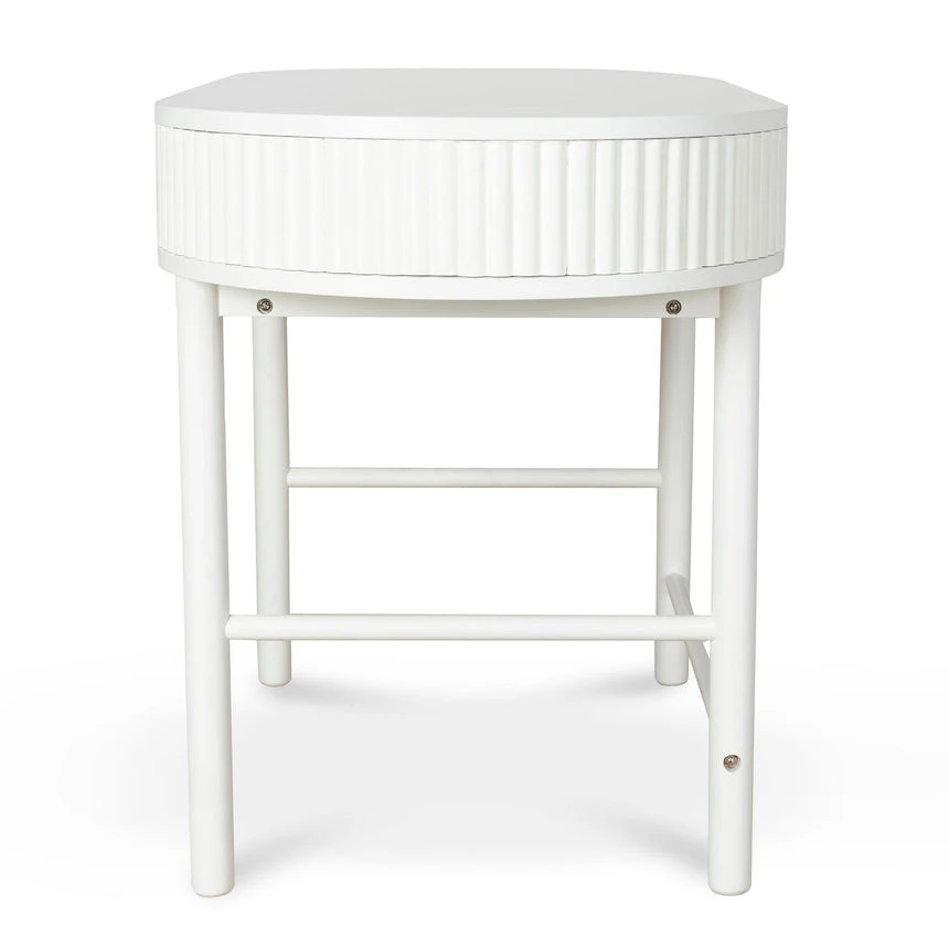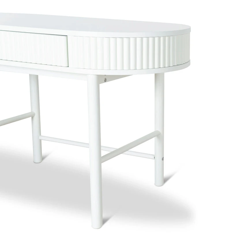 Engineered wood with natural oak veneer Solid natural wood legs NC painting Functional and aesthetic Contemporary rounded edges Pull-out drawer Ribbed textured detailing Weight Capacity: 80 kg Product is flat packed and requires two-person assembly Note: Please note that white tones may be affected by the lighting in the room.
