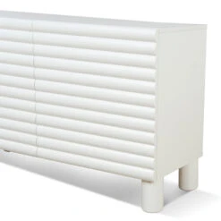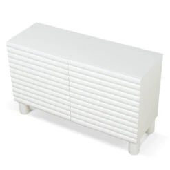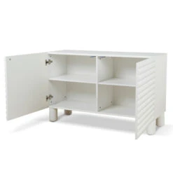 Engineered wood cabinet construction Solid beech wood legs Perfect for smaller spaces 80% engineered wood, 20% solid oak Chunky rounded legs Ribbed detailing for style Four internal compartments Weight Capacity: 100 kg Product is flat packed and requires two-person assembly
