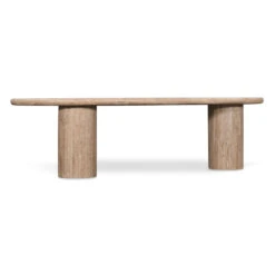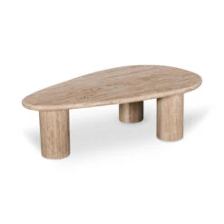 Marvel travertine construction Pear-shaped tabletop 3 thick cylindrical legs Aesthetic geometrical design Weight Capacity: 20 kg Minor assembly required Note: Melbourne Pick-up and Delivery Only Travertine marble is a natural stone which will have unique imperfections and characteristics Any variations in colour, texture, polish and patterns are not faults Travertine marble is porous; wipe away any liquid spills immediately using water or a mild cleaner to avoid marks. Placemats and coasters are recommended Differences between shipments is to be expected