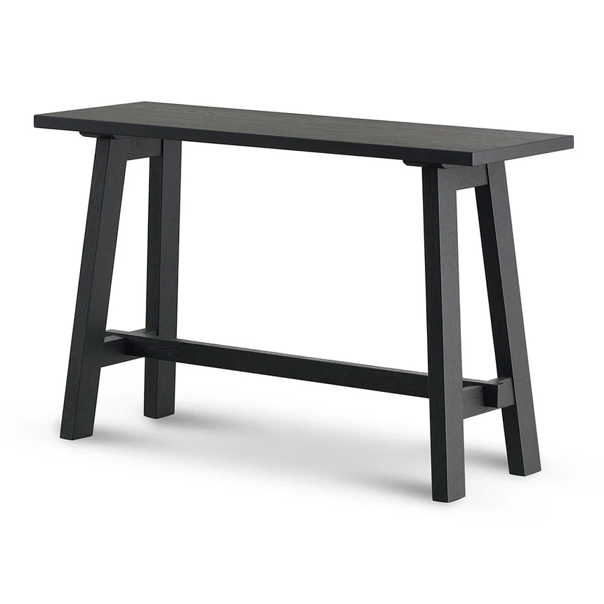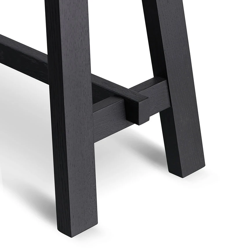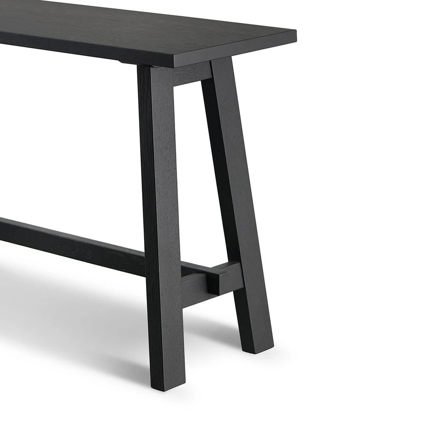 Engineered wood with veneer table top Solid wood edging with rustic oak veneer Solid Timber frame build Timber legs with solid oak lamination Sleek black paint with wood texture visible Suitable for commercial use Weight Capacity: 100kg Product is flat packed and requires 2-person assembly
