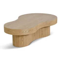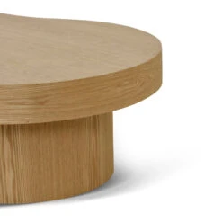 Engineered wood construction Natural finish Contoured tabletop for extensive display Prominent wood grain patterns Thick contoured base Weight Capacity: 20 kg Minor assembly required