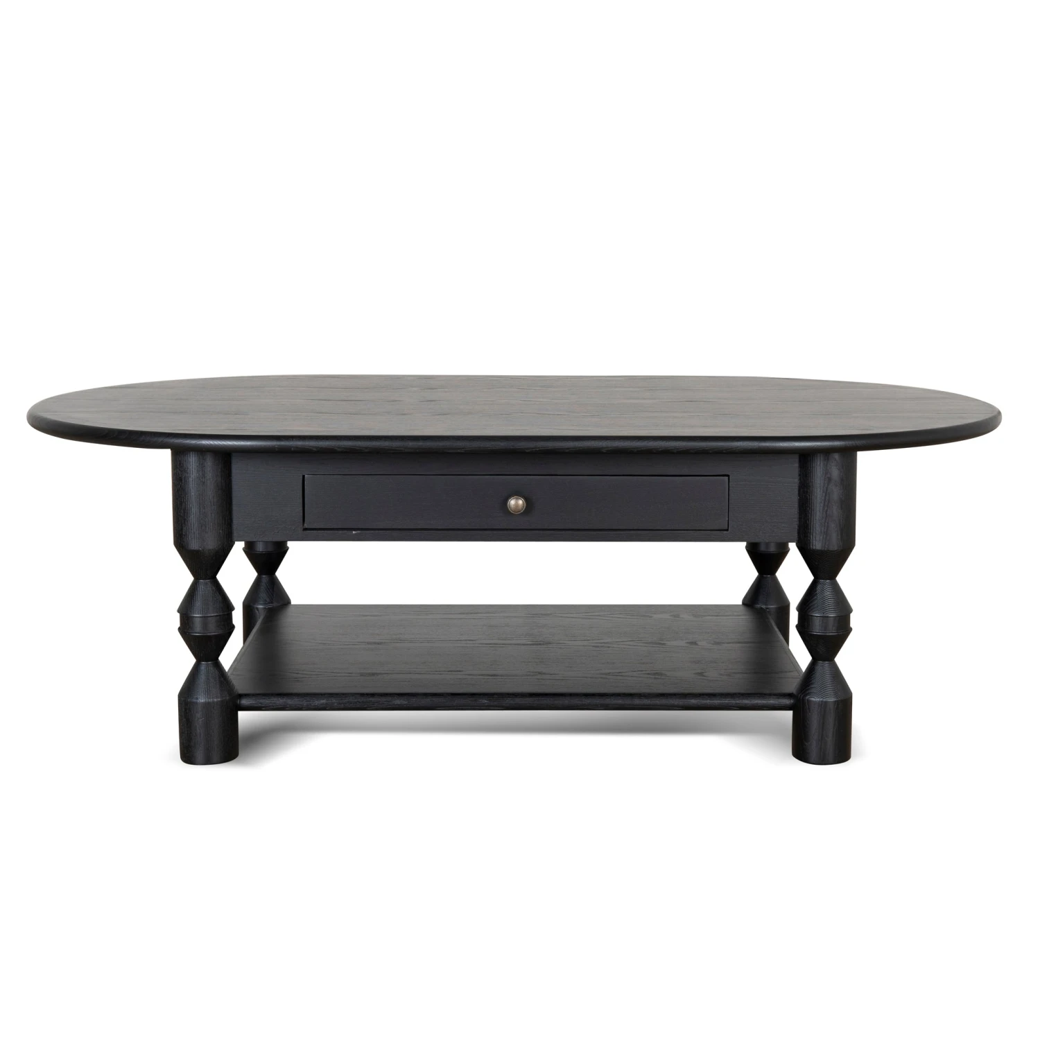 Solid ash wood legs Plywood top with natural veneer finish Turned legs Raised back edge Two spacious drawers with classic round knobs Delicate curvature on the base stretcher Smooth tabletop surface Weight Capacity: 150 kg Product comes fully assembled