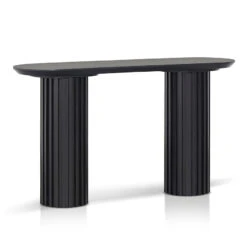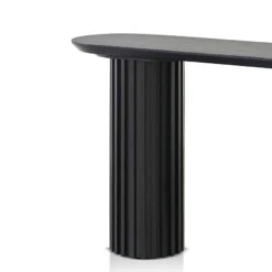 Durable engineered wood with veneer Long, thick, smooth table top Black oak finish for wood texture 2 sets of long, thick cylindrical legs Weight capacity: 80 kg Product is flat packed and requires two-person assembly