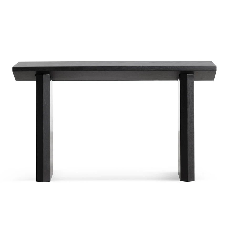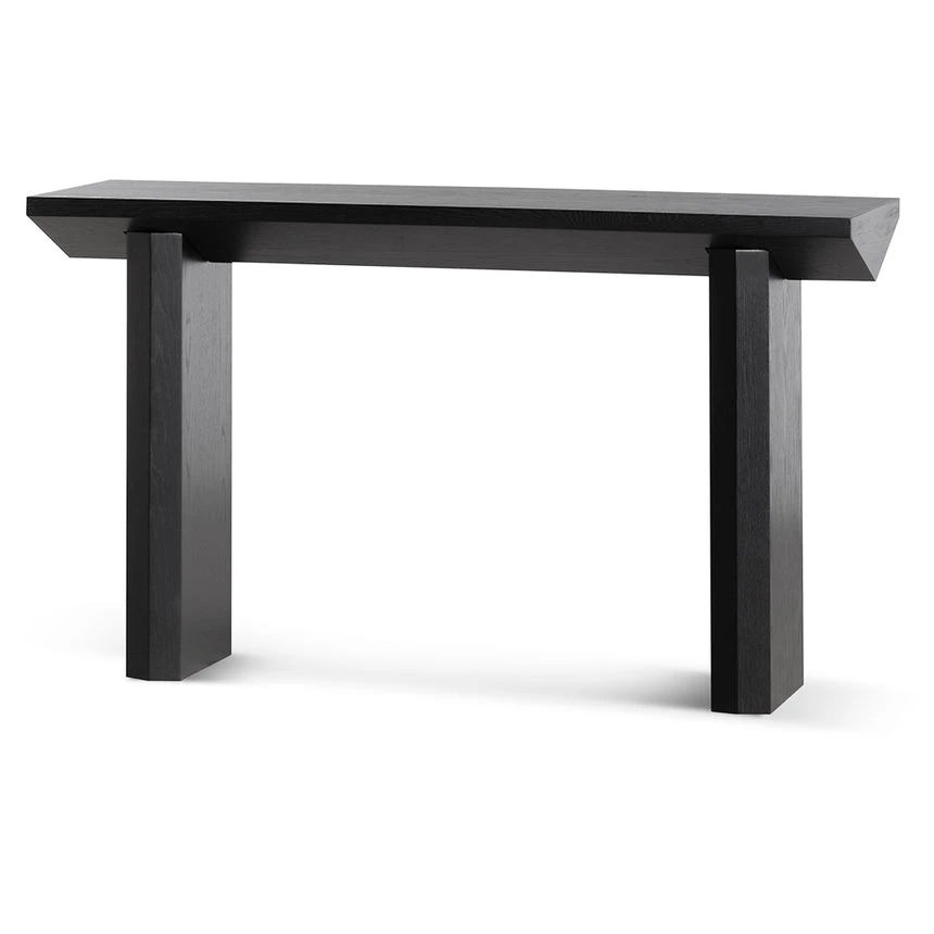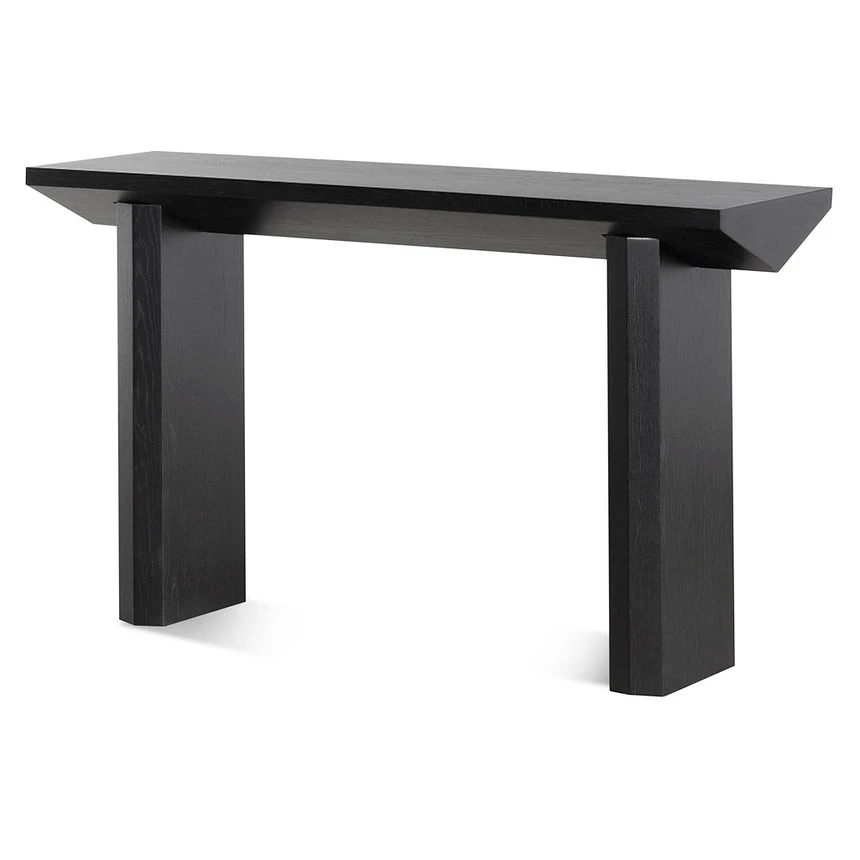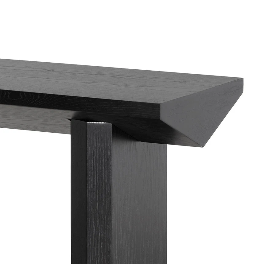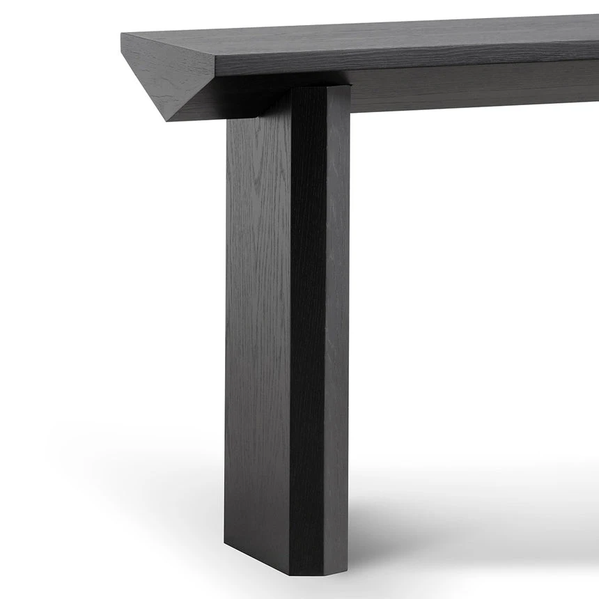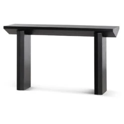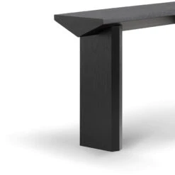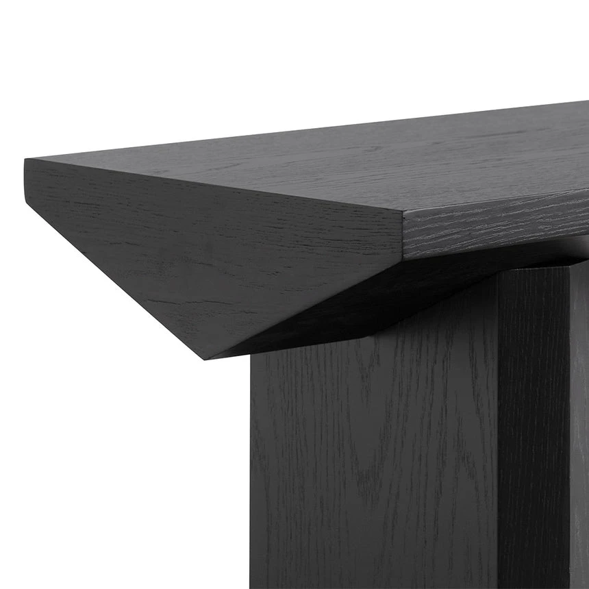 Engineered wood construction Rectangular legs and pyramid-shaped table top Complete matte black finish Slim and narrow design suited for modest spaces Weight limit of 20 kg Product is flat packed and requires two-person assembly Note: Product is not suitable for commercial use.