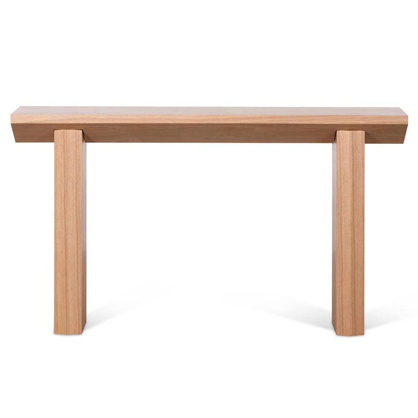 Engineered wood construction Rectangular legs and pyramid-shaped table top Complete matte black finish. Slim and narrow console table design suited for modest spaces. Weight limit of 20 kg. Product is flat packed and requires two-person assembly Note: Product is not suitable for commercial use. Transform your modest space into a stylish and functional area with this slim and narrow console table. Its sleek and modern design features rectangular legs and a pyramid-shaped table top, all finished in a complete matte black. With its sturdy engineered wood construction and weight limit of 20 kg, this table is perfect for everyday use. Plus, it’s flat packed and requires two-person assembly for easy setup. Invest in quality and style with this console table – perfect for residential use.