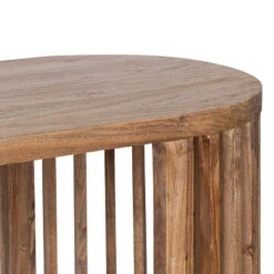 Recycled elm wood construction Vertical wood slat detailing All natural finish with and weathered design Open design with 3x display shelves Product comes fully assembled Product care: We highly recommend waxing often