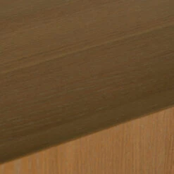 Engineered wood with oak veneer Dusty oak finish Water-based lacquer coating Visible wood grain Handle-less drawer design Pull-to-open mechanism Smooth glide rails Soft-curved front legs for stability Product is fully assembled