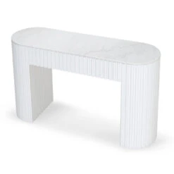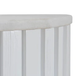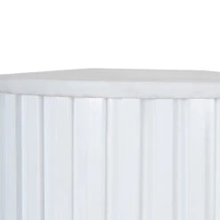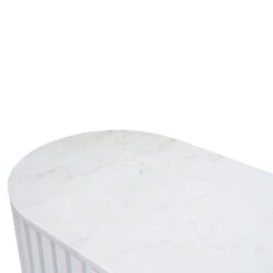 Marble top surface Solid elm wood legs with plywood natural veneer Bold cylindrical leg design Elegant sculptural feel Ribbed structure for a robust grounded look Stylish and versatile for various styles Weight Capacity: 150 kg Product comes fully assembled Note: Our marble table tops are a natural stone that each have their own unique imperfections and characteristics. Any variations in colour, texture, polish and pattern are not a fault and should be appreciated. Please note that polished marble is porous, so contact with liquids or hot beverages may cause the marble to mark. Make sure to wipe away any spills immediately using water or a mild cleaner. We recommend the use of placemats and coasters to further protect the integrity of the marble.