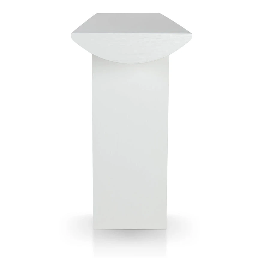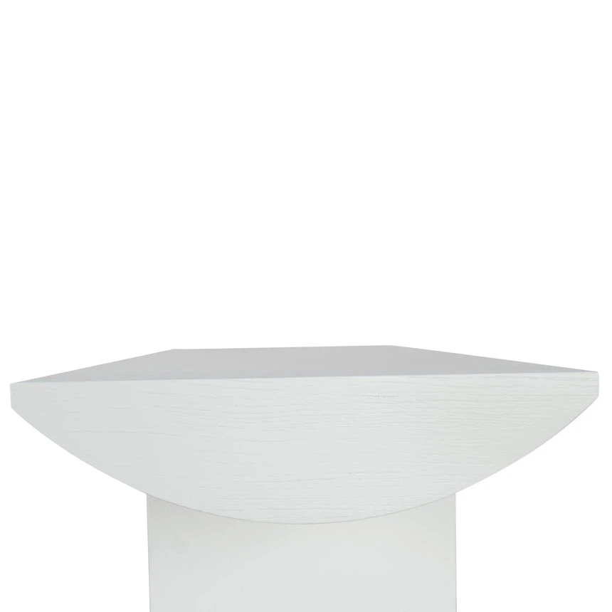 Engineered wood with veneer White oak finish Ideal for decor and essentials Cylindrical tapered legs Geometric design Stylish and functional Contemporary interiors Weight Capacity: 20 kg Requires two-person assembly