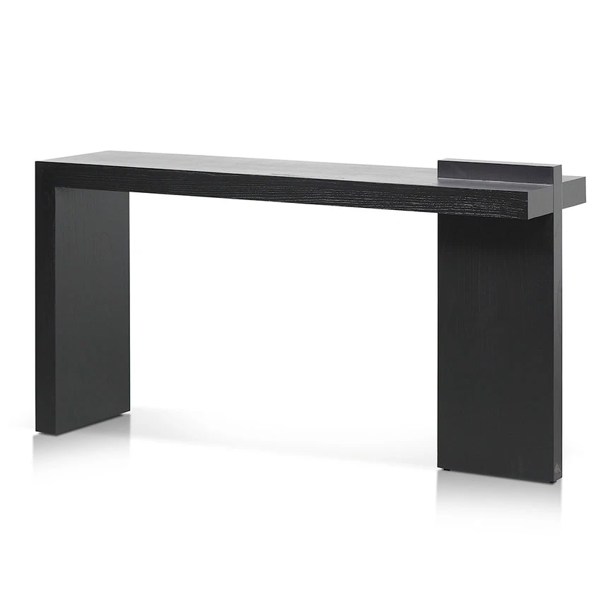 Durable plywood with elm veneer finish Black finish with wood grain Thick rectangular top Organic-shaped legs Weight capacity: 80 kg Product comes fully assembled
