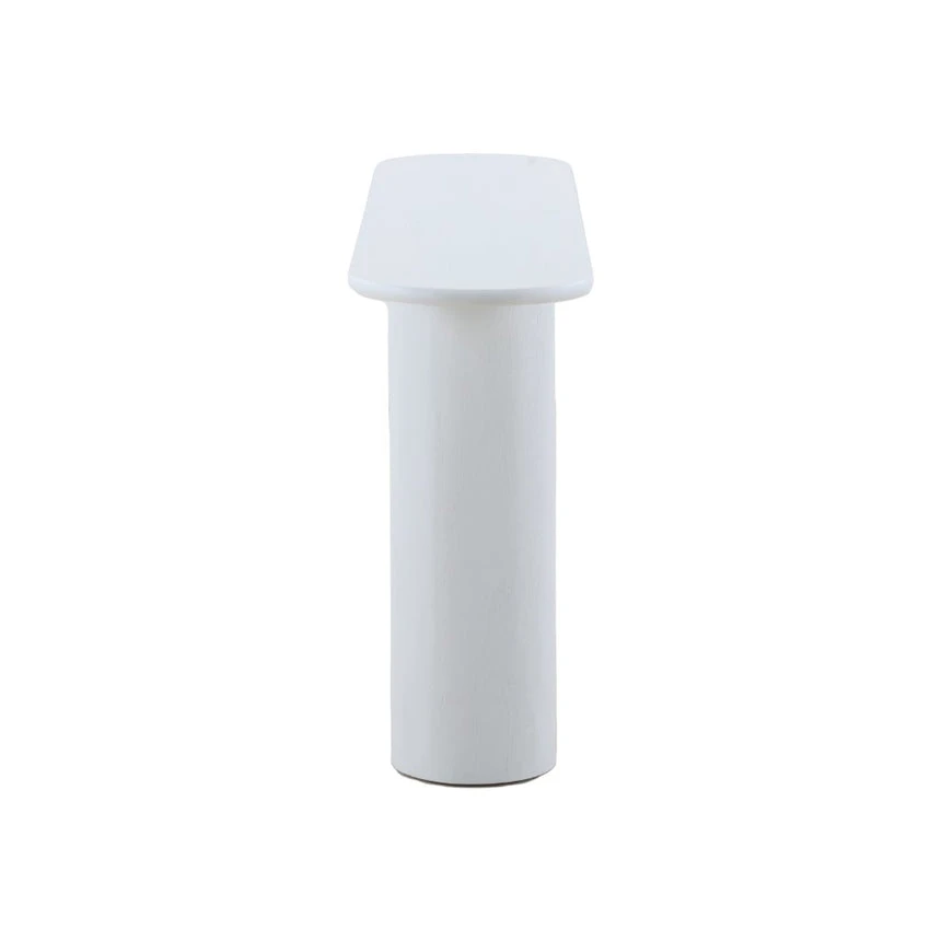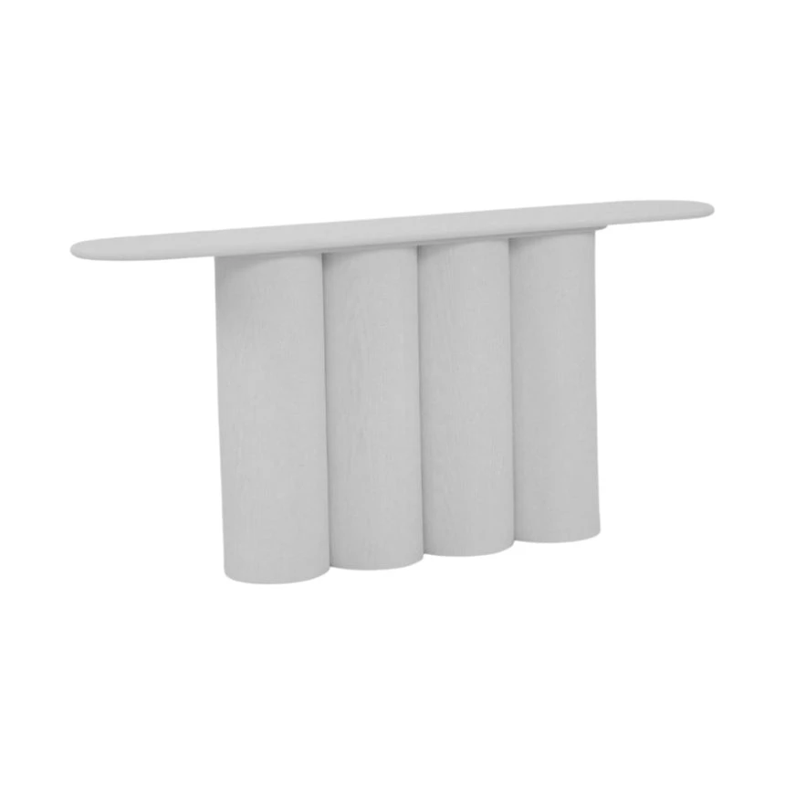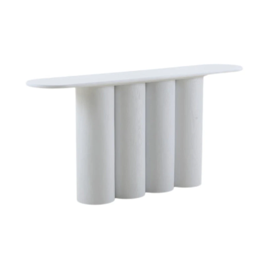 Engineered wood with ash veneer finish 4 spherical thick legs with floor protectors Long table top for ample space Full matte white paint Weight capacity: 50 kg Product is flat pack and requires two-person assembly