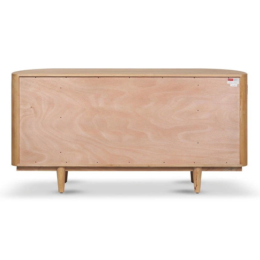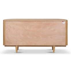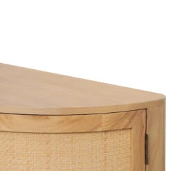 Frame made from natural solid elm Rectangular shape with rounded corners 4x rattan woven doors Durable plywood veneer shelves Metal peg handles Pull-to-open doors 3x double-shelf cabinets 4x Solid elm legs Circular flared black wooden legs Weight Capacity: 100 kg Product comes fully assembled Note: Melbourne pick-up and delivery only