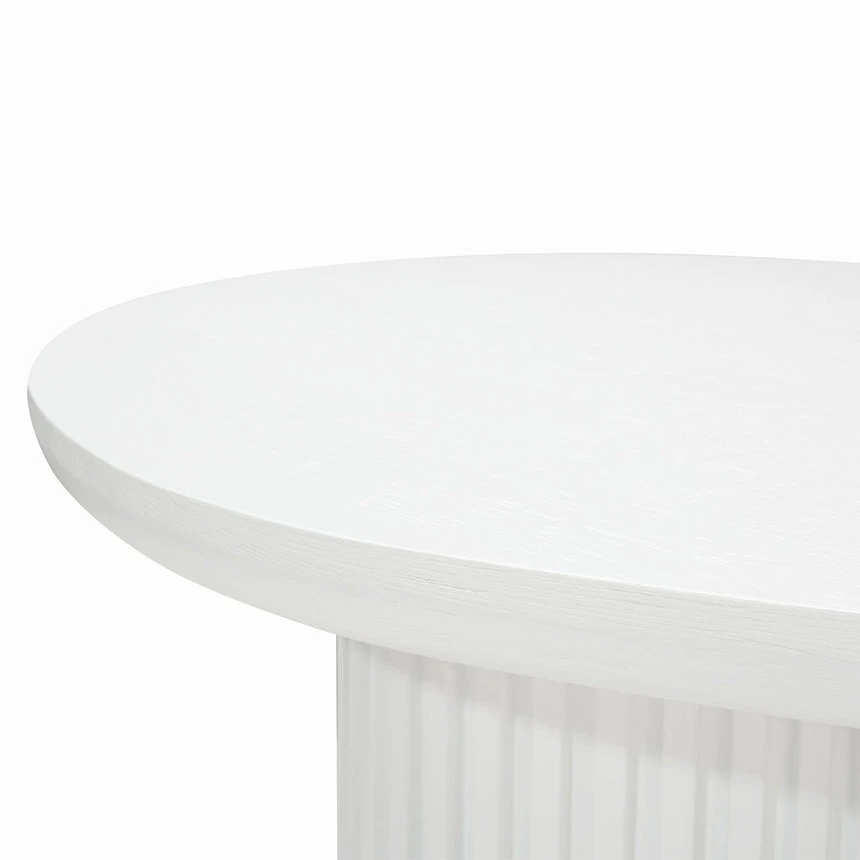 Engineered wood with veneer Water-based paint Smooth flat surface area Two fluted legs Modern design Clean lines and subtle details Ideal for home and office Weight Capacity: 50 kg Minor assembly required