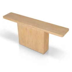 Timber top Solid wood frame and legs Wax-coated natural wood finish Thick tabletop Subtle rounded edges Blends with various decor styles Solid base design with sculptural look Weight Capacity: 100 kg Requires two-person assembly
