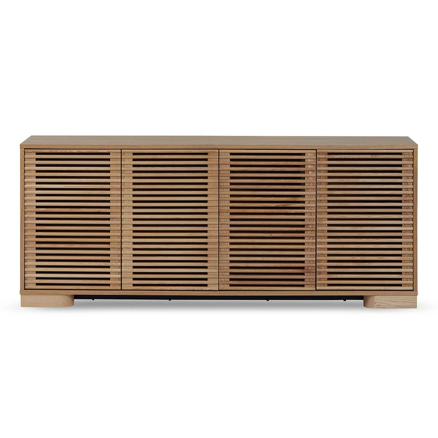 Body is made of engineered wood with veneer 2x cabinets with 4x solid wood doors Each cabinet with 2x shelves Distributed weight capacity of 150kg Product needs minor assembly