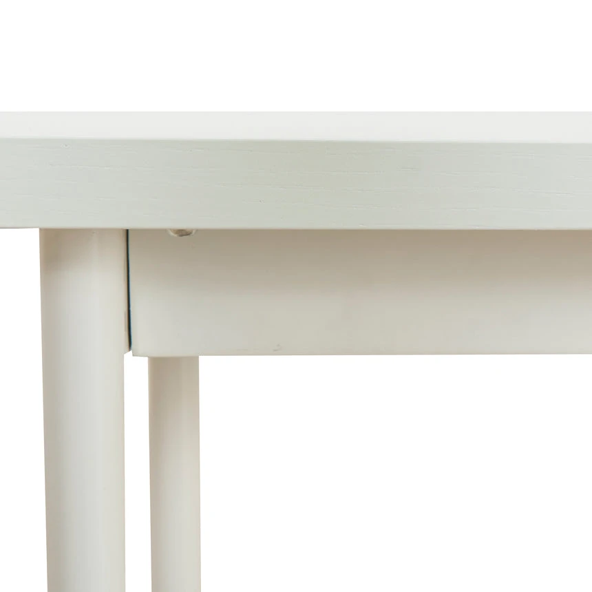 Engineered wood with white oak veneer White metal legs Matte white finish Ideal for modern minimalist spaces Simple clean-lined design Perfect for entryways, dining areas, or hallways Weight Capacity: 200 kg Product requires 2 person minor assembly