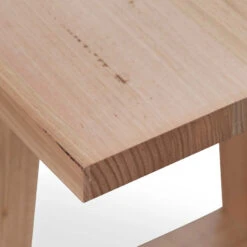 Solid messmate and wood veneer construction Trapezoid loop legs in a solid messmate build Deep wood grain patterns throughout Elongated rectangle bench seat Product is flat packed and requires two-person assembly