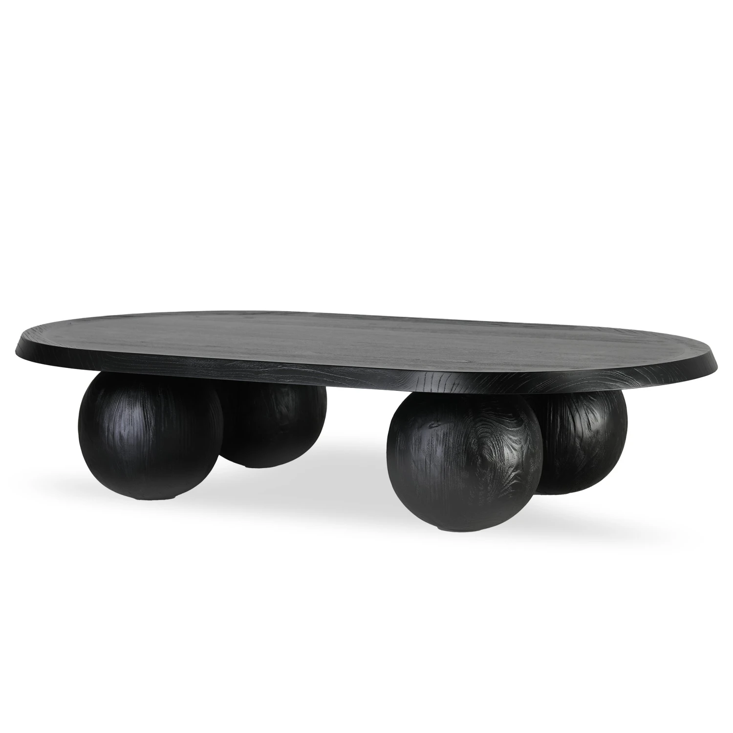Travertine marble top Recycled fir wood legs Bold circular shape Three oversized black ball feet Low-profile design Natural stone paired with matte black accents Weight Capacity: 150 kg This product is supplied flat-packed and requires assembly by two people Note: Please note that our standard warranty does not apply to natural stone products. All travertine products are carefully inspected and securely packaged in a wooden crate, which will require your own tools to open. Travertine is a natural stone, and each piece possesses its own unique imperfections and characteristics. Variations in color, texture, polish, and pattern are inherent to the material and should be appreciated as part of its natural beauty. This product is porous, and contact with liquids or hot beverages may cause marking on the surface. We strongly recommend wiping away any spills immediately with water or a mild cleaner. To further protect the integrity of the surface, the use of placemats and coasters is advised.
