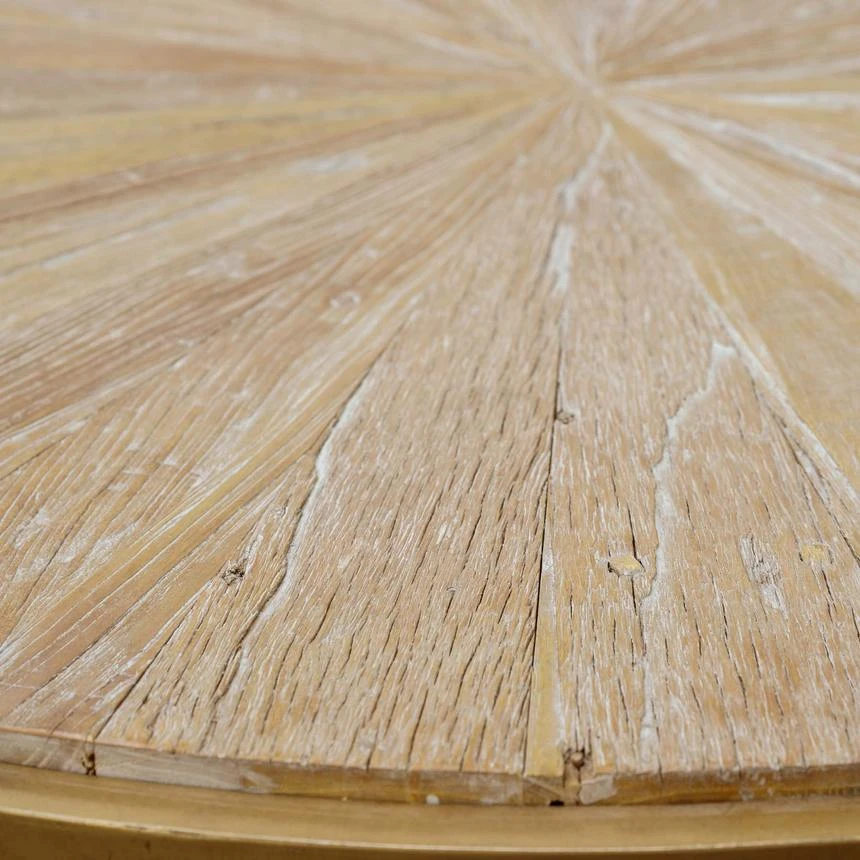 Weathered reclaimed elm timber Golden copper iron finish Maintain by slightly cleaning with a damp cloth and wiping dry All natural items are inspected and images are sent prior to dispatch Fully assembled Note: The timber used in this range is reclaimed elm timber. Each handmade piece will naturally have distinctive characteristics such as; cracks, splits and imperfections due to the nature of the wood. Any variations in colour, texture and pattern are not faults but should be appreciated. Differences between shipments are to be expected.