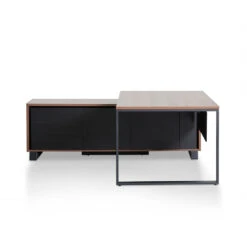 Steel table frame with melamine particle board Veneer and durable engineered wood 3 wide spacious drawers for storage Comes in a rustic walnut color Weight capacity: 200kgs Product is flat packed and requires 2-person assembly