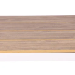 Polywood tabletop in a teak finish Sturdy aluminum frame and legs Sand white-hued angled legs Textured grain finish for an organic look Spacious 2.3m length This product is supplied flat-packed and requires assembly by two people Note: The tabletop is made from polywood, a durable synthetic material designed to mimic natural wood with a subtle textured grain.