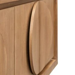 MDF with a dusty stained oak timber veneer finish 6 x cupboard doors with three storage compartments Half moon handles Fully assembled Note: Melbourne pick up and delivery only.