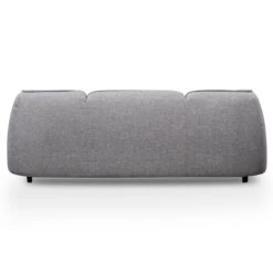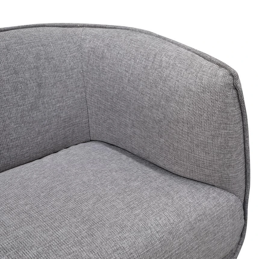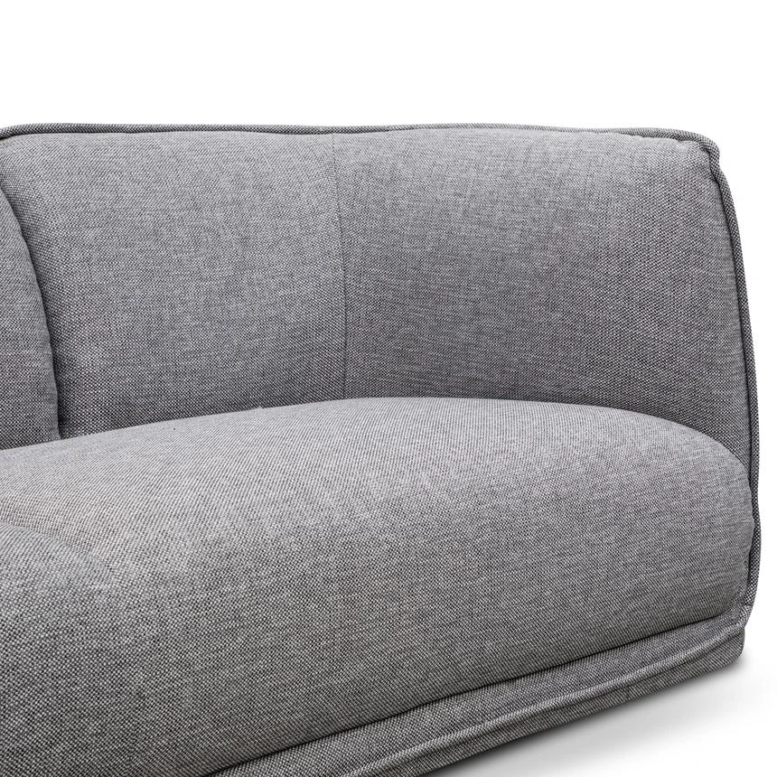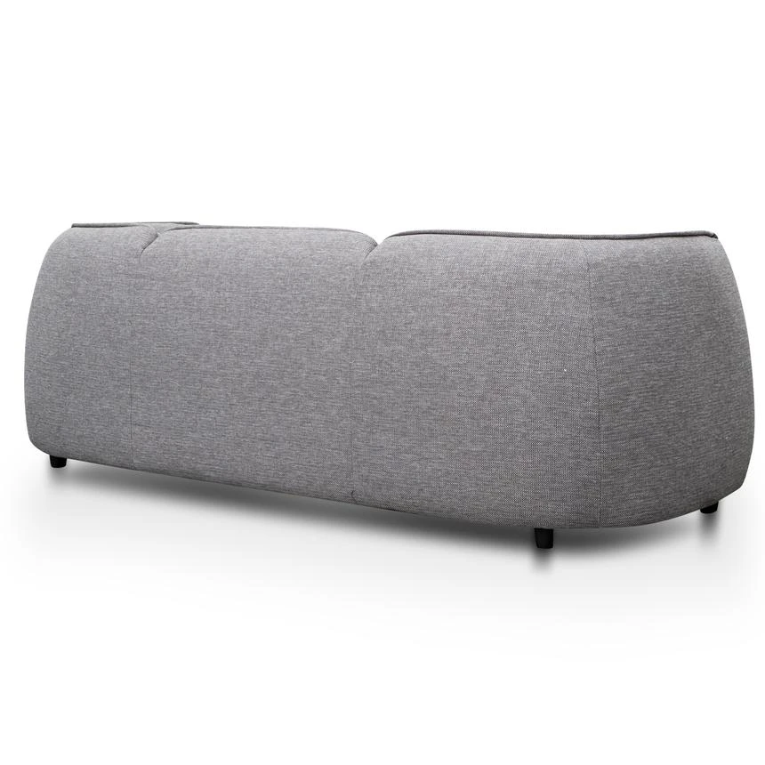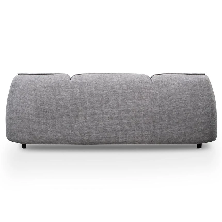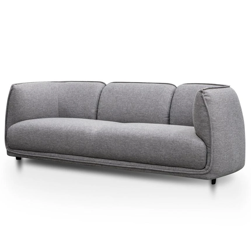 Upholstered in an Graphite grey fabric Short and robust club legs in black Curved silhouette Matching pipe stitching along the edges Seats up to 3 people Two-person assembly required