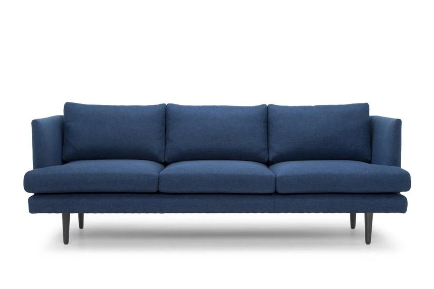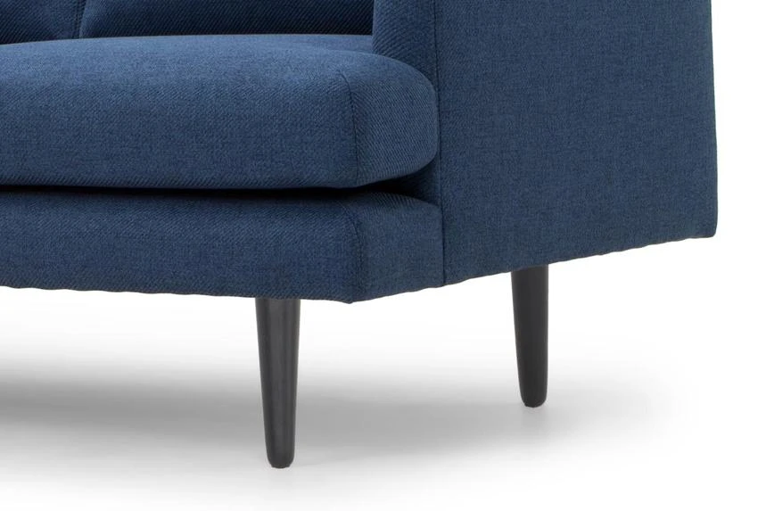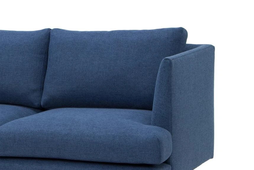 Sturdy construction with lifetime appeal featuring solid oak legs in black stained Upholstered in stain-resistant polyester Vence blue fabric for durability and a soft look and feel High-density foam cushions for excellent comfort and supporting form Soft lines, thick cushioning and straight tapered legs make the sofa a flexible and cosy design option to suit a variety of spaces Navy hues and natural wooden tones combine to give you a neutral colour theme you can easily work into your existing décor Care instruction