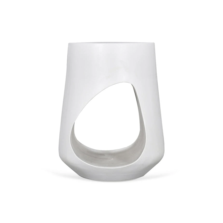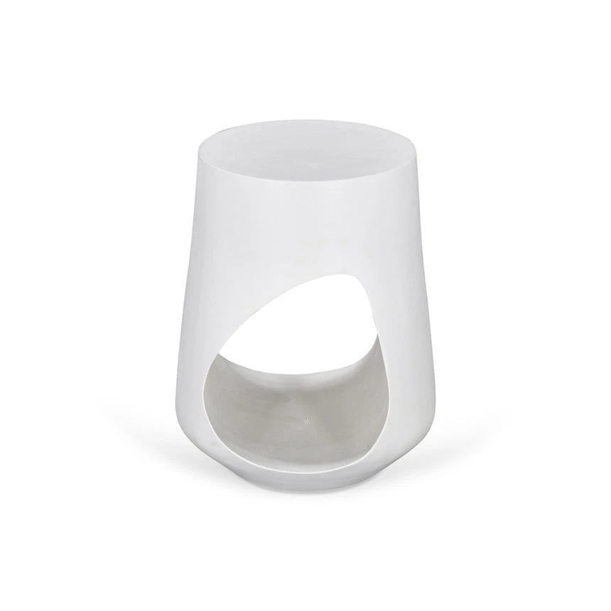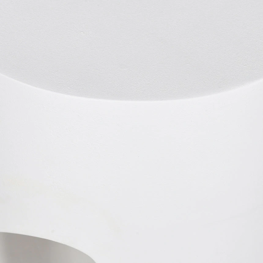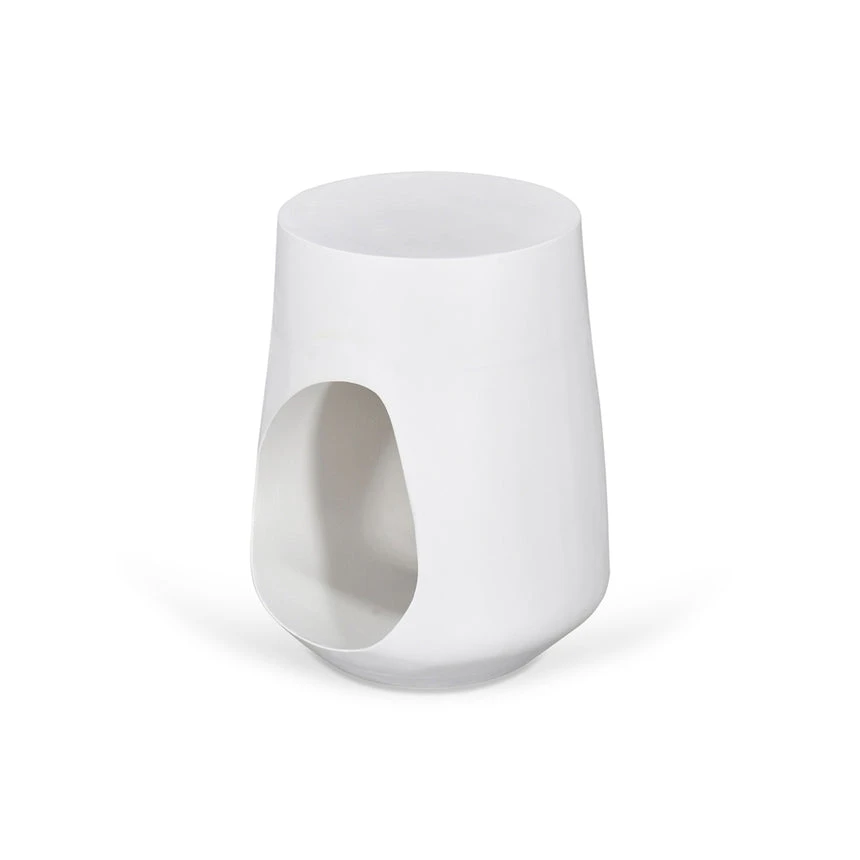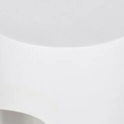 Engineered wood construction Full white finish Central hole for visual intrigue Circular top for display Weight Capacity: 10 kg Product comes fully assembled