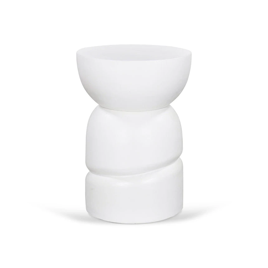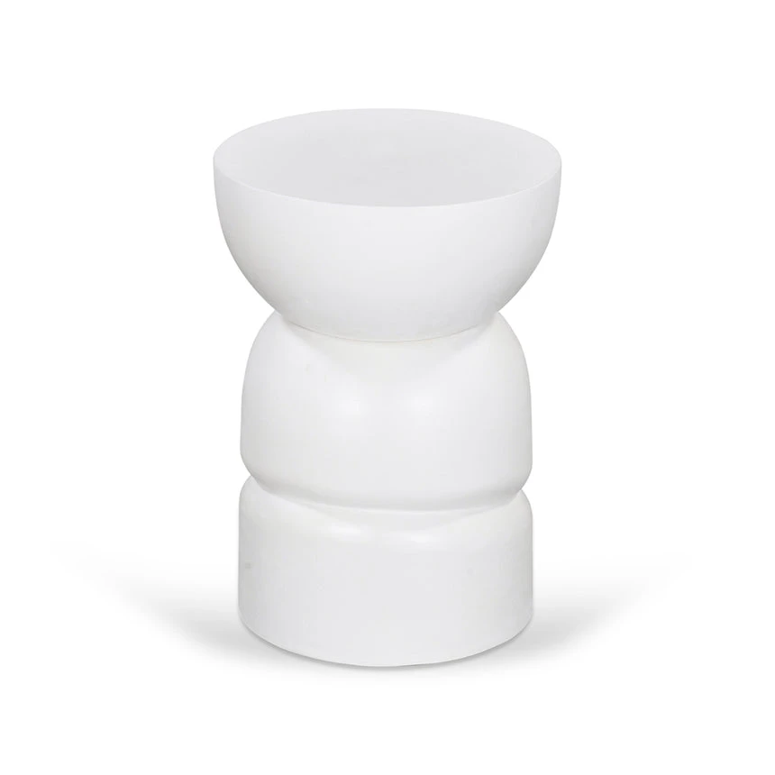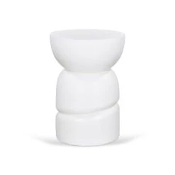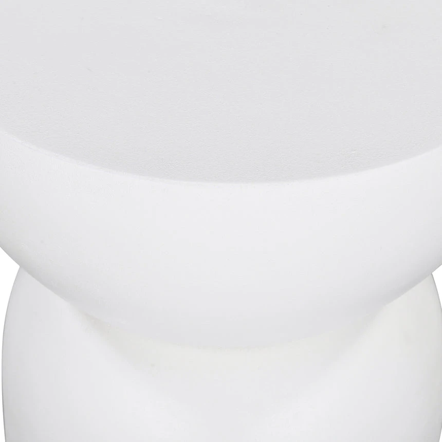 Elevate your living space with this modern and distinctive side table. Crafted with engineered wood, this table boasts a full white finish that adds a touch of elegance to any room. Its circular top provides the perfect spot to display your favorite decor pieces, while the soft curved edges add a subtle touch of sophistication.