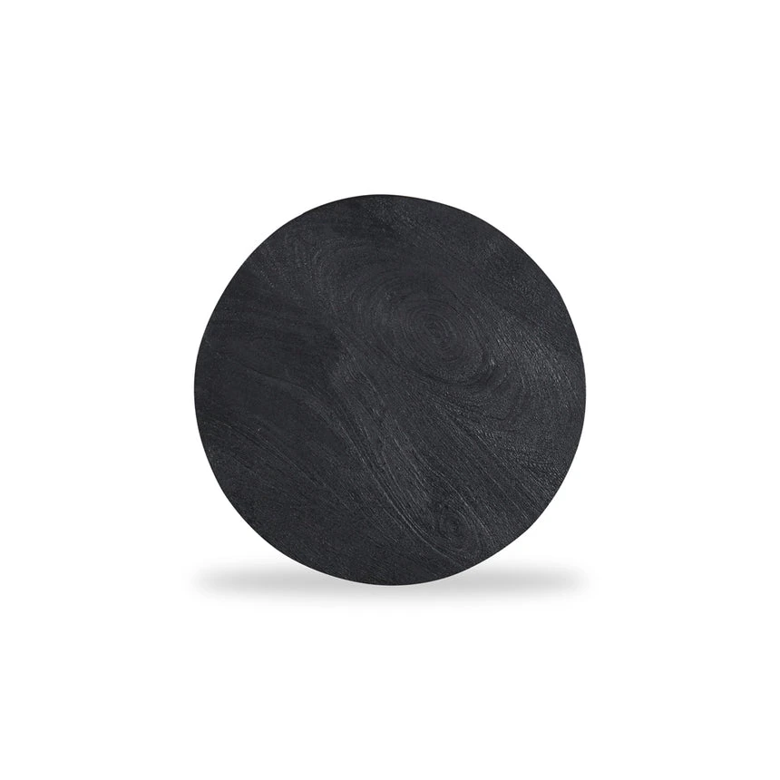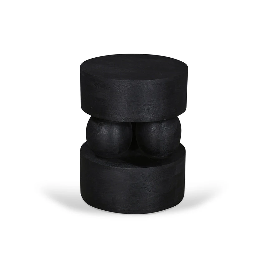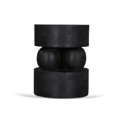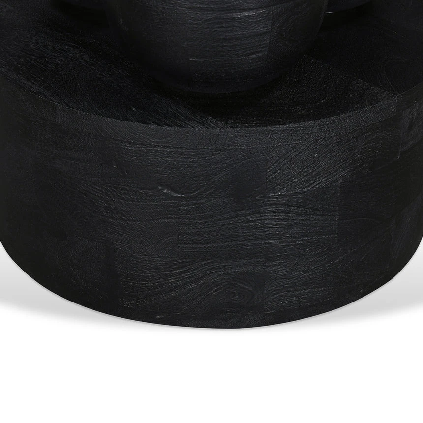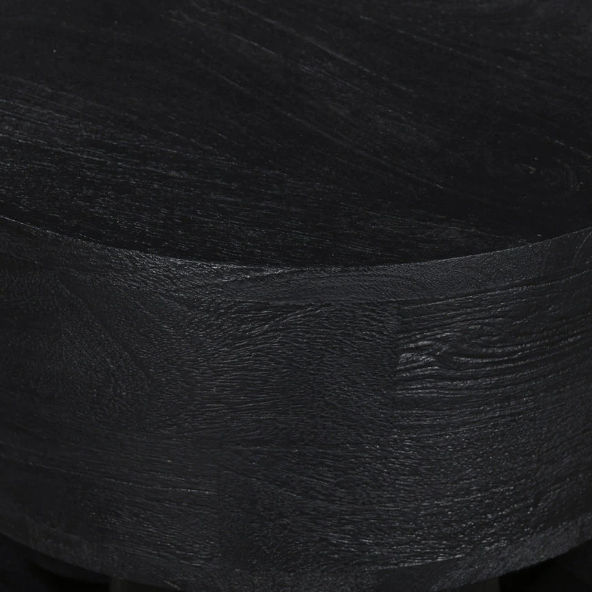 Mango wood construction Black finish Wood grain patterns Geometric design Stylish display surface Weight Capacity: 10 kg Minor assembly required